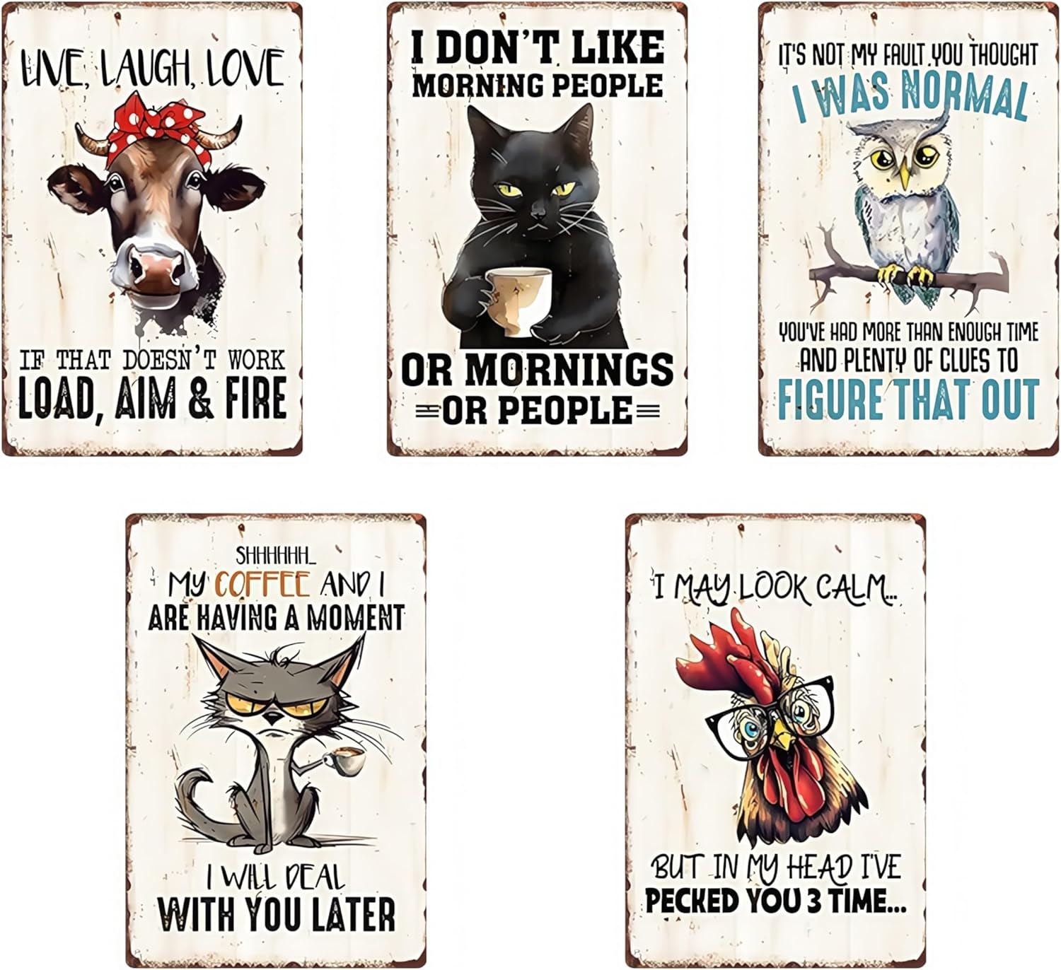 1PC Funny Animal Metal Wall Art – Sarcastic Chicken Quote Rusted Tin Signs for Bar & Man Cave Decor, Gray