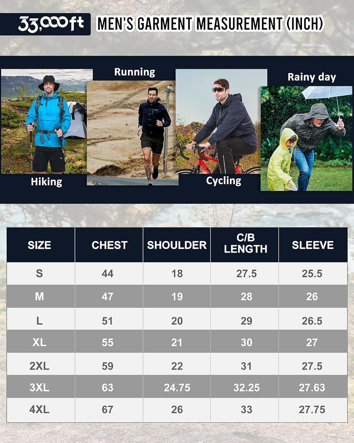 33,000ft Men’s Rain Jacket with Hood Lightweight Waterproof Pullover Packable Raincoat Windbreaker Breathable For Outdoor Camping Hiking Riding