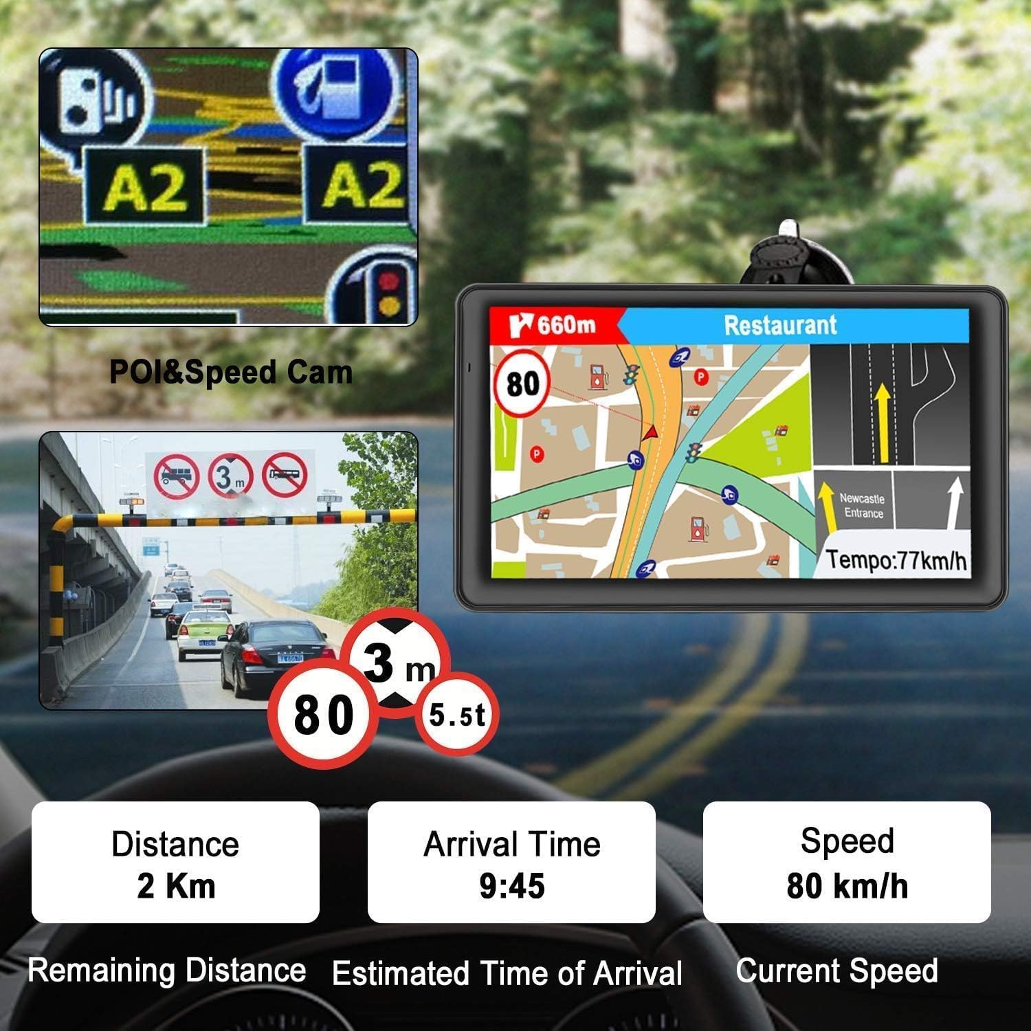 7 Inch Car Sat Nav GPS for UK & Europe, 2026 Maps with Free Lifetime Updates, Postcode Search, Speed Camera Alerts, Voice Guidance, Optional Truck Routing