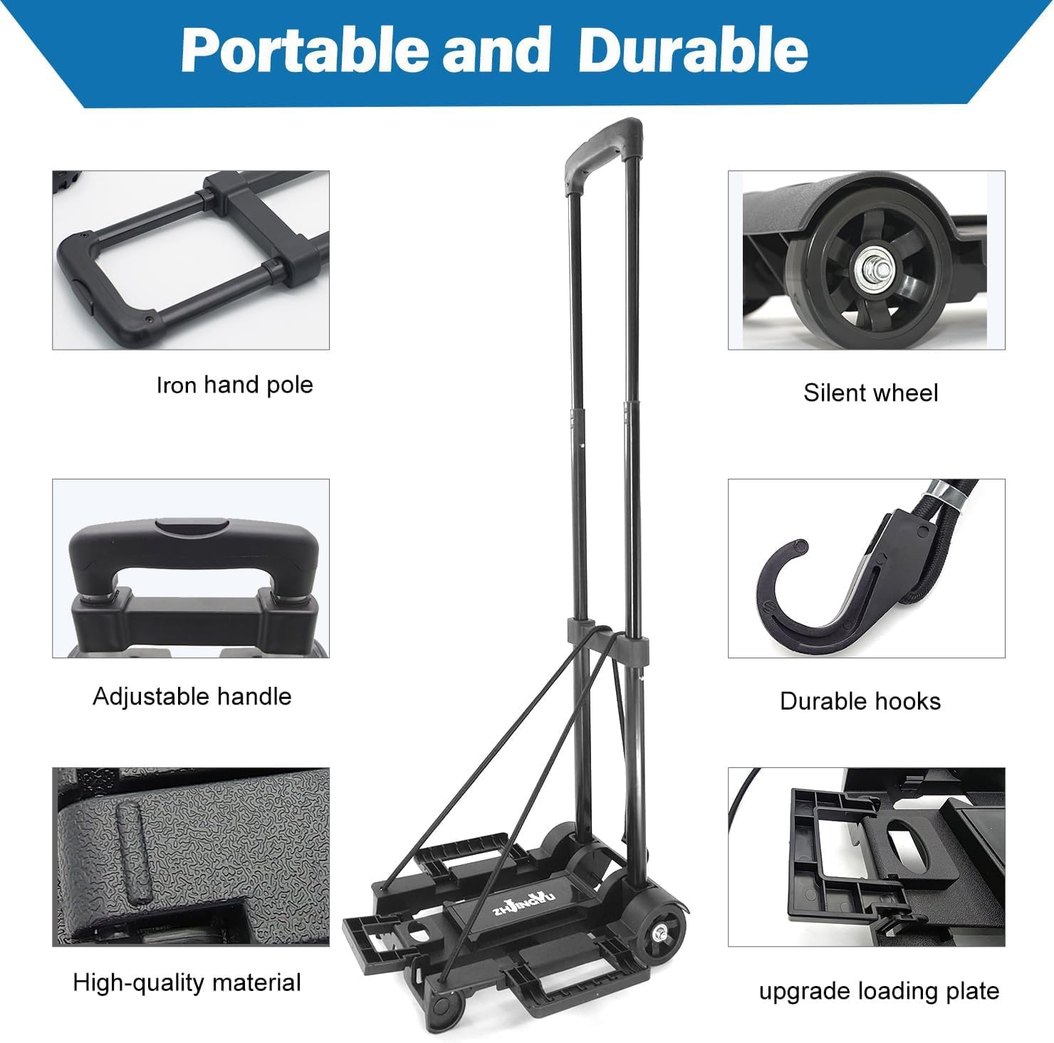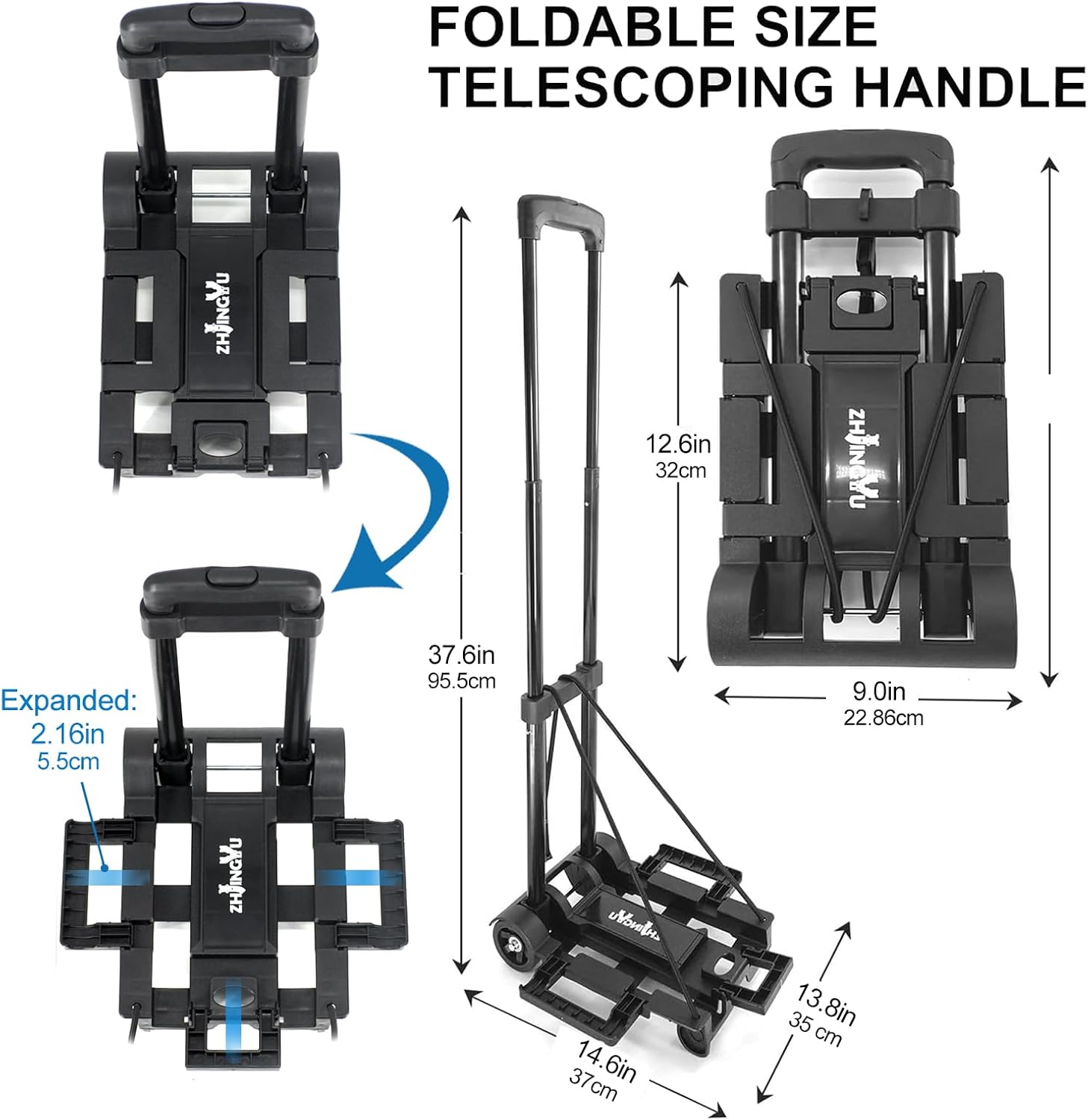 70lbs Folding Hand Truck | Sack Barrow | Steel Foldable Trolley | Adjustable Baseplate & Bungee Cords | 2 Wheel | Folds into Backpack for Lifting Luggage Travel Auto