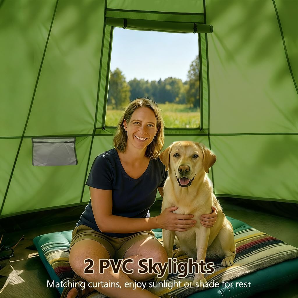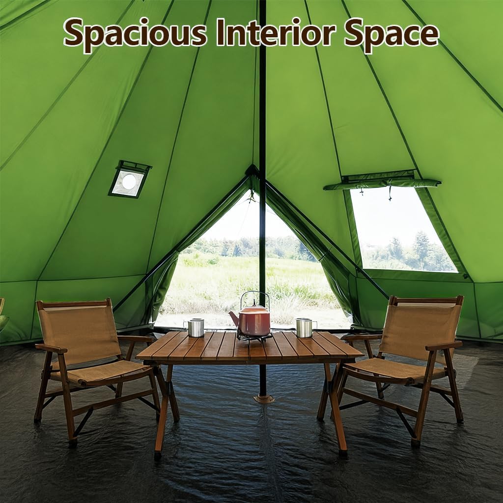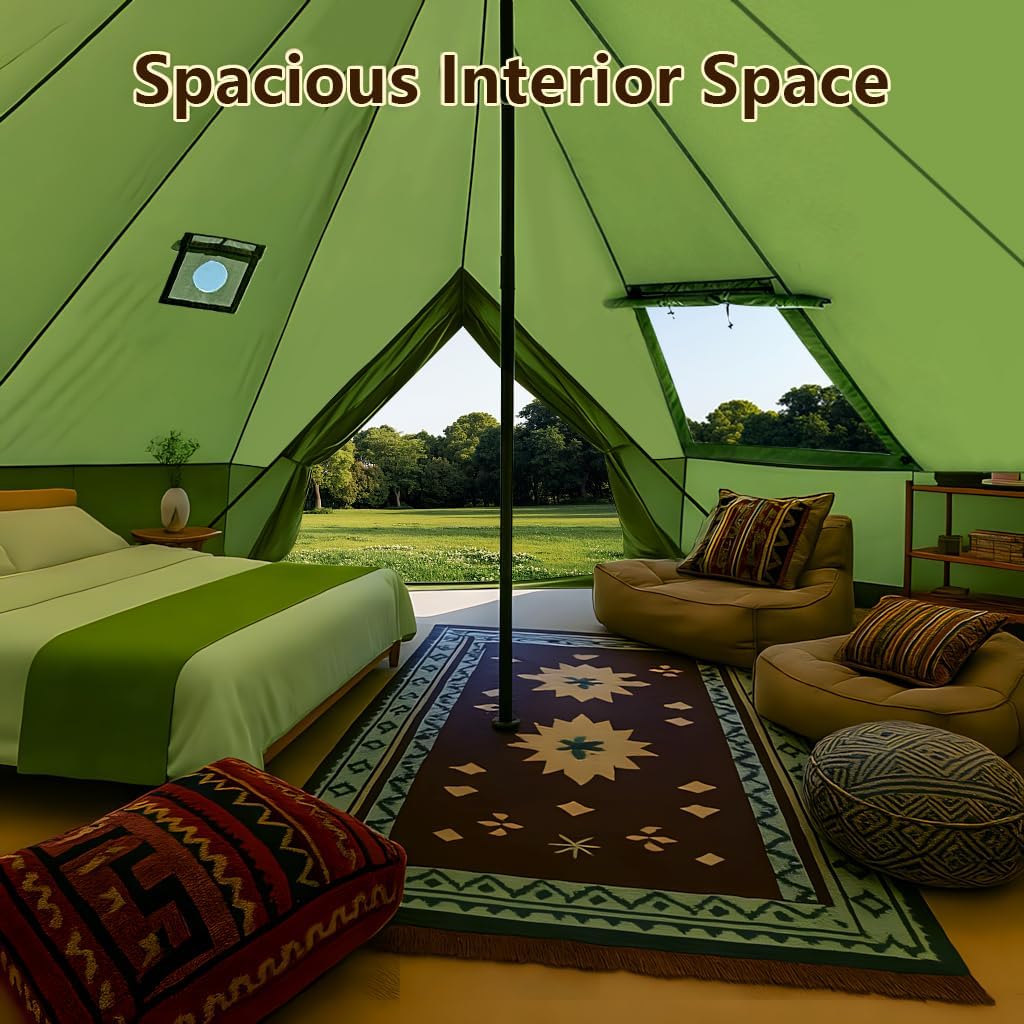 Bell Yurt Tent with Stove Jack, Waterproof Luxury 4 Season Tent 420D Oxford Cloth Green Glamping Tents for Family Outdoor Camping, Hunting, Party, All Year Living