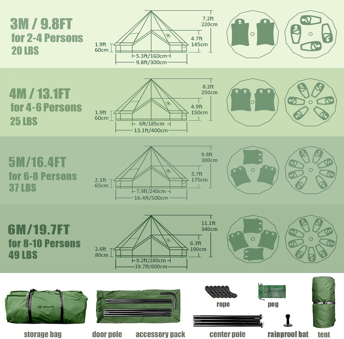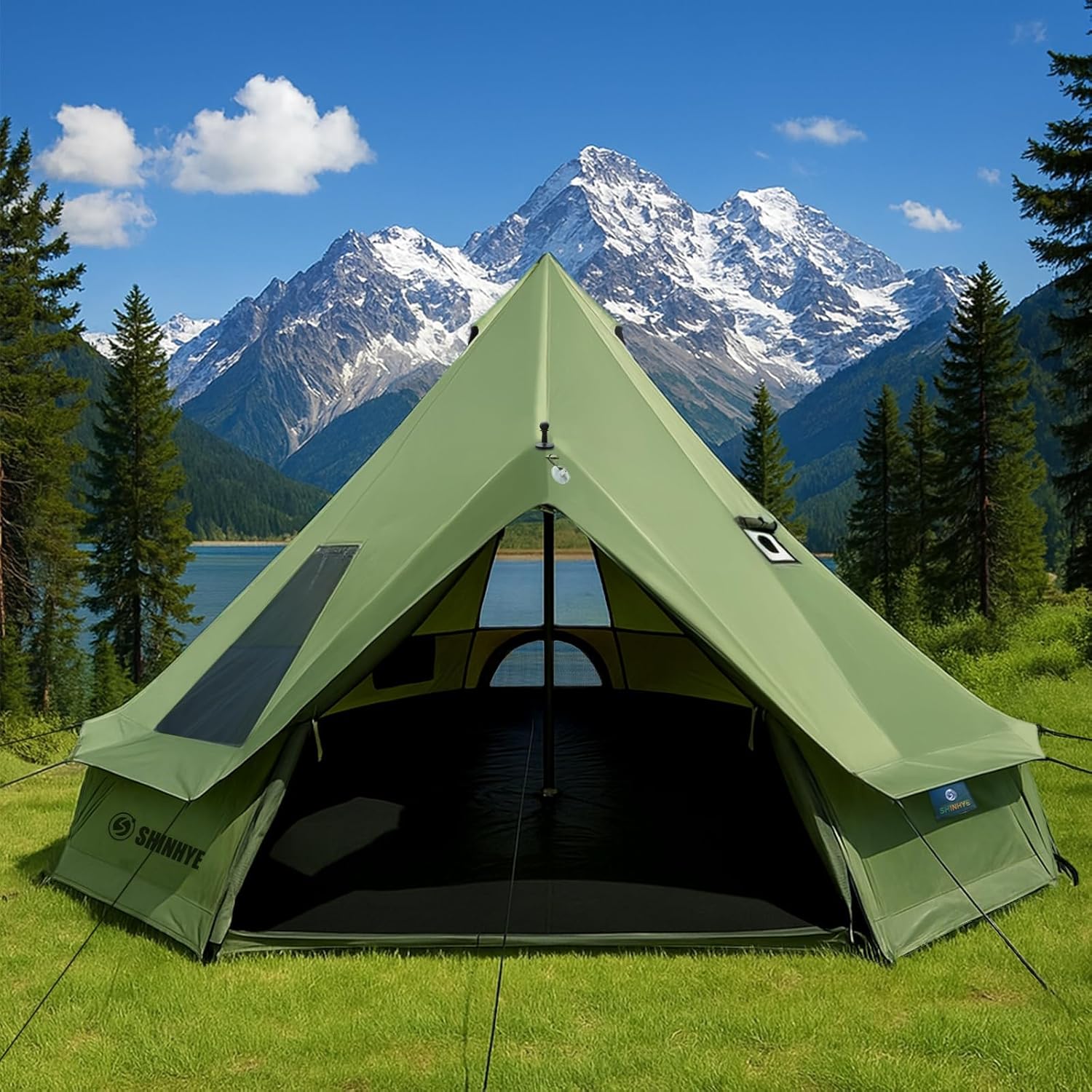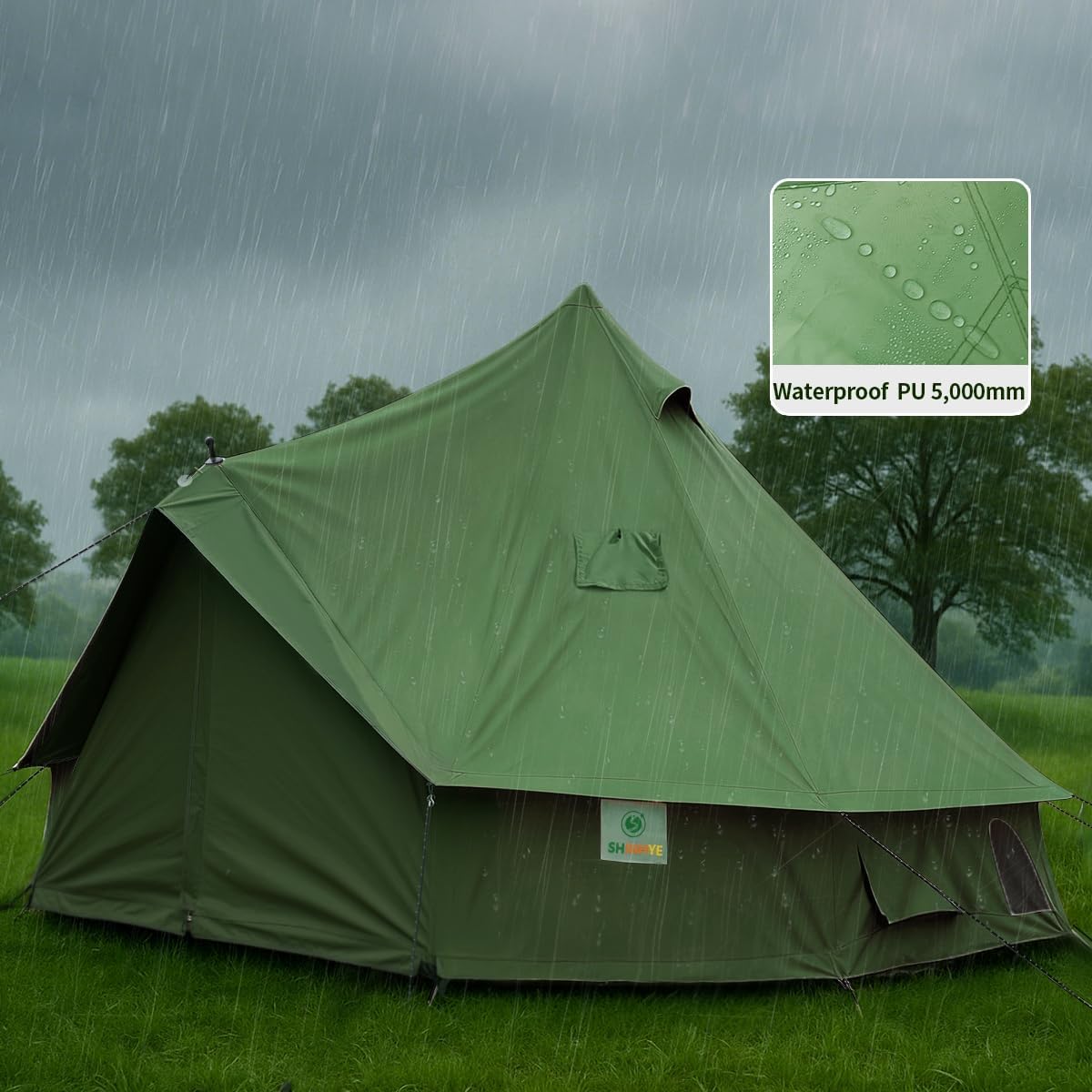 Bell Yurt Tent with Stove Jack, Waterproof Luxury 4 Season Tent 420D Oxford Cloth Green Glamping Tents for Family Outdoor Camping, Hunting, Party, All Year Living