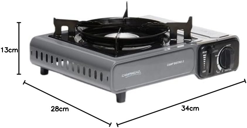 The Campingaz Camp Bistro Stove is a compact and efficient outdoor cooker designed for camping enthusiasts. With a powerful 2200-watt capacity, it provides ample heat for cooking meals in the great outdoors. Its sturdy construction ensures durability, while the included carry case makes transportation hassle-free.