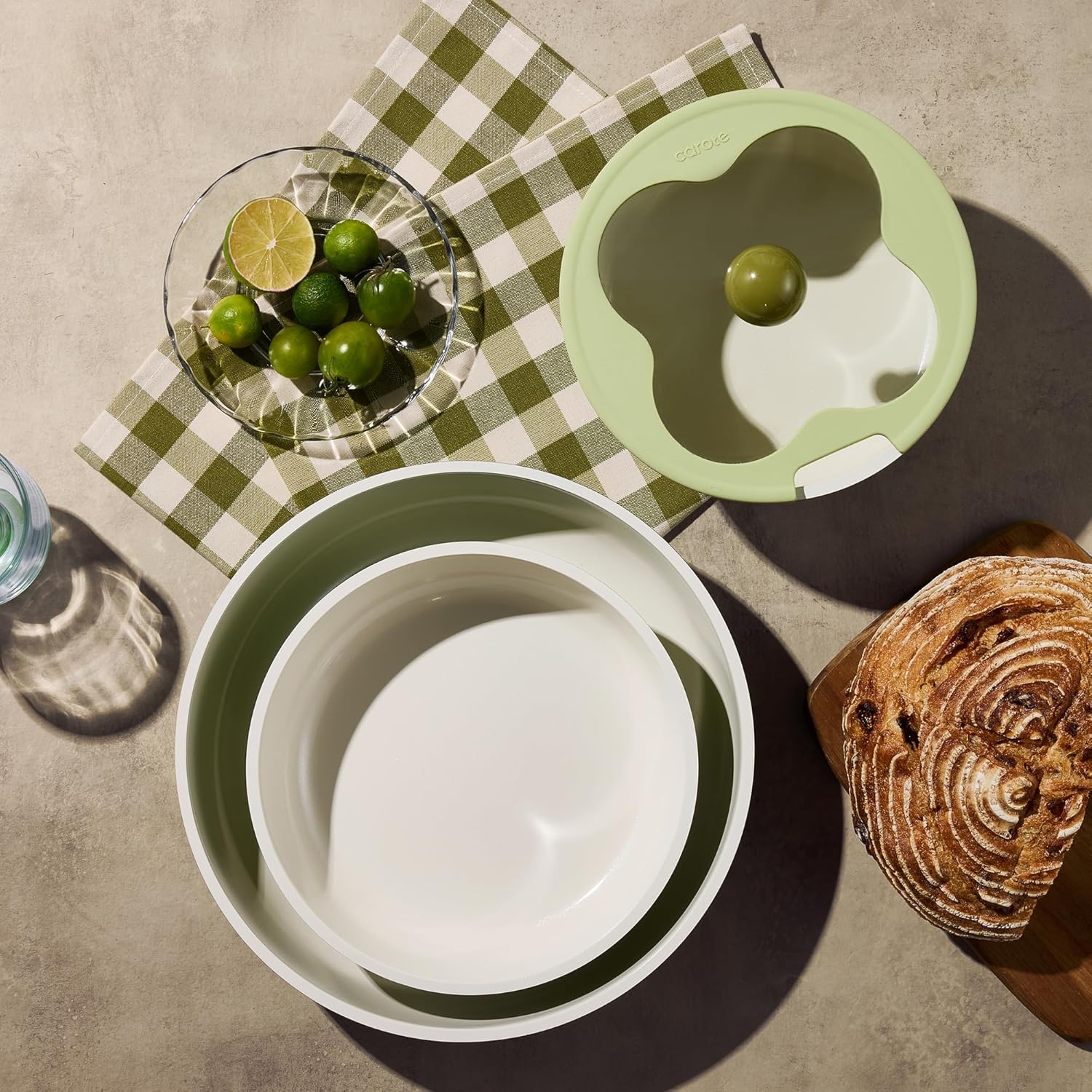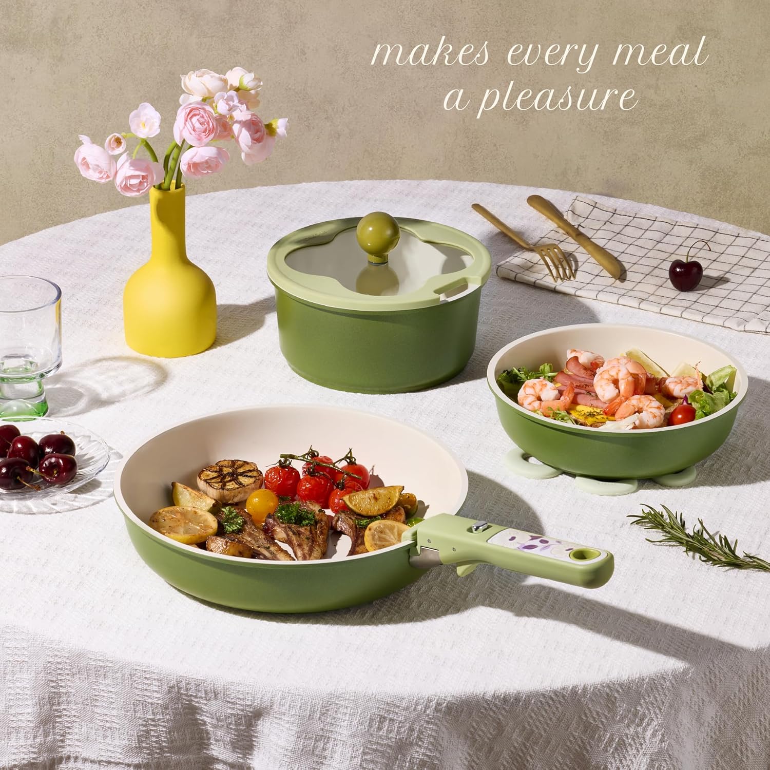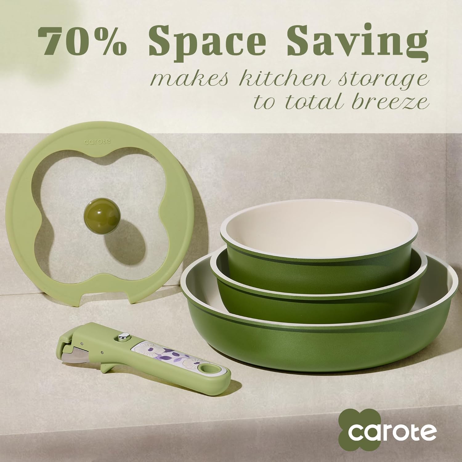 CAROTE 11pcs Ceramic Cookware Set, Pots and Pans Set Non stick, Induction Kitchen Cookware with Removable Handle, Dishwasher & Oven Safe, RV/Camping Cookware, PFOA Free, Green