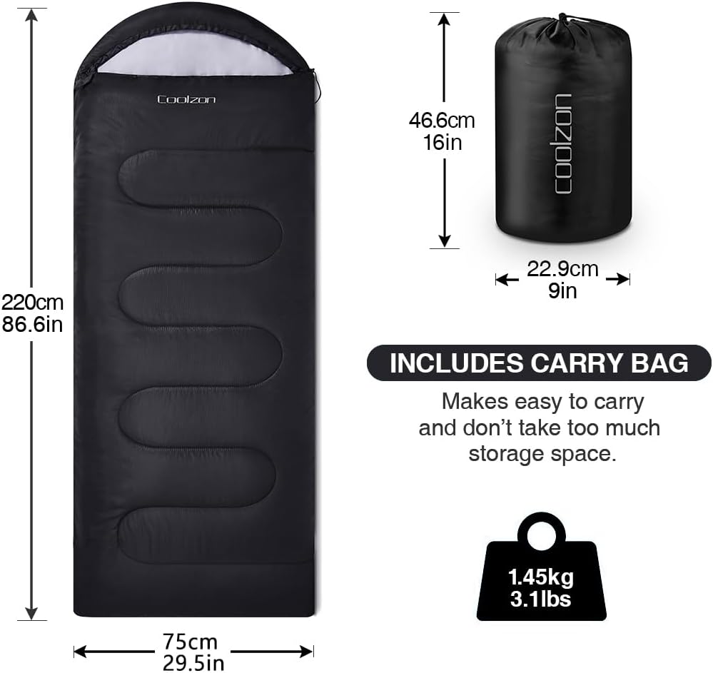Coolzon Outdoor Sleeping Bag for Camping, for 3-4 Seasons, Adult Blanket, Small Packed Size, Ultralight Carry Bag, Soft, Thick and Warm, for Outdoor Camping, Travel, Hiking