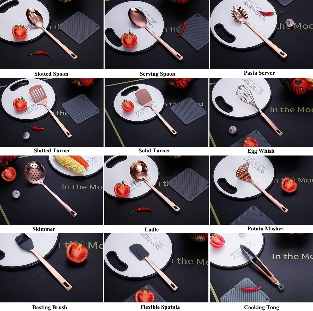 The Copper Kitchen Utensils Set includes 13 essential pieces designed for both functionality and style. Made from high-quality stainless steel, these utensils feature a beautiful titanium rose gold plating that adds a touch of elegance to your kitchen. The set is perfect for non-stick cookware, ensuring that your cooking experience is both enjoyable and efficient. Each utensil is crafted to withstand daily use, making them a reliable addition to your kitchen tools.