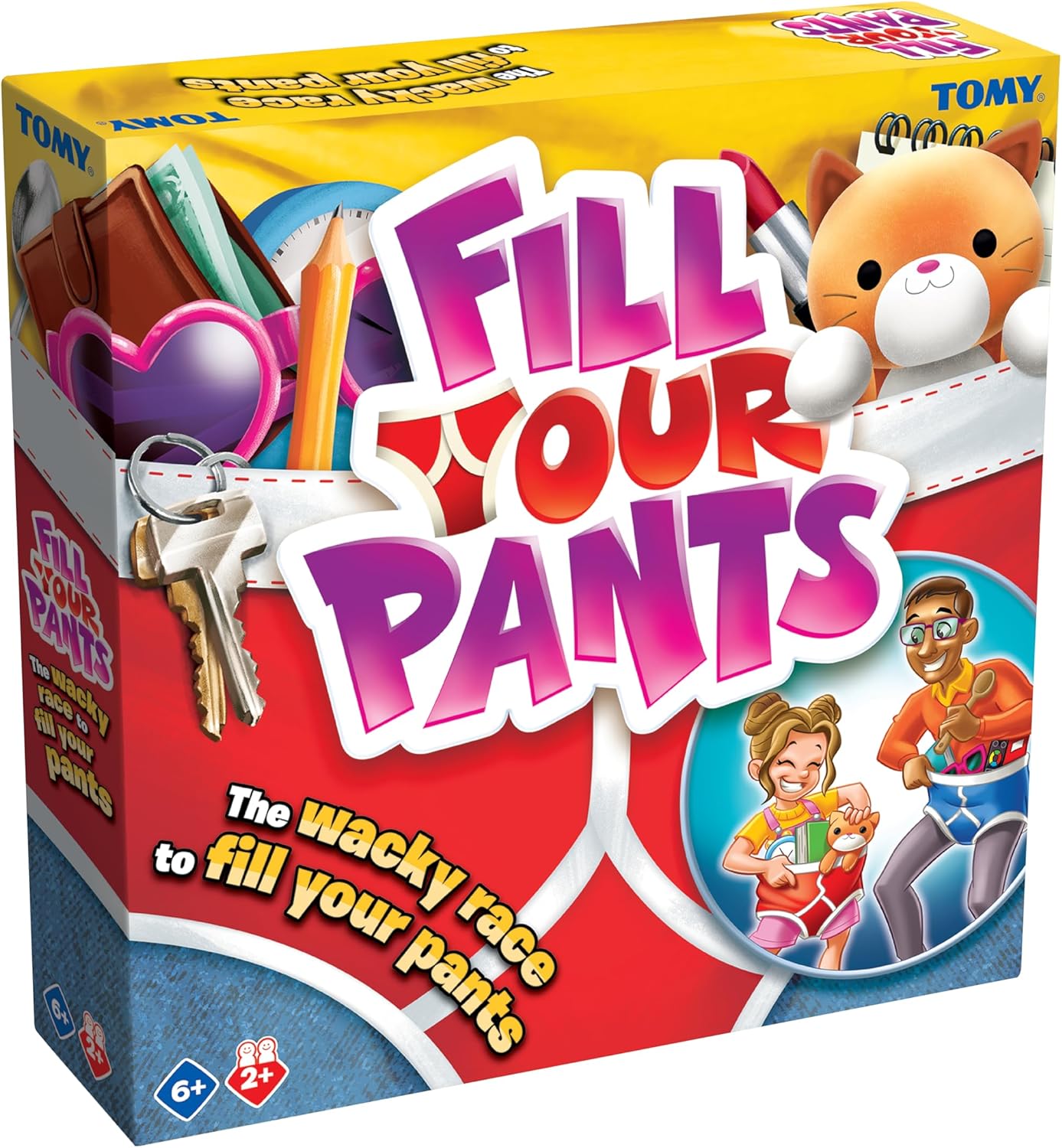 Fill Your Pants is an engaging game designed for both kids and adults, making it perfect for family gatherings or parties. The objective is simple: players race to collect various items and stuff them into giant pants. This game encourages physical activity and laughter, suitable for ages 6 and up. Within minutes of opening the box, you can start playing, making it a great choice for spontaneous fun.