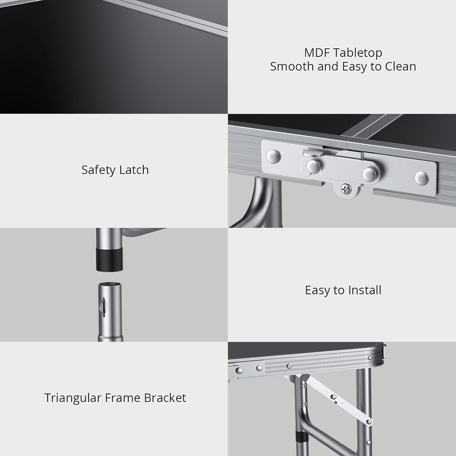 EYPINS Folding Camping Table 58×40 cm, Max Height 70cm Aluminum Picnic Table 3 Heights Adjustable, 2ft Portable Table Lightweight with Carry Handle for Catering Buffet and Garden, Silver