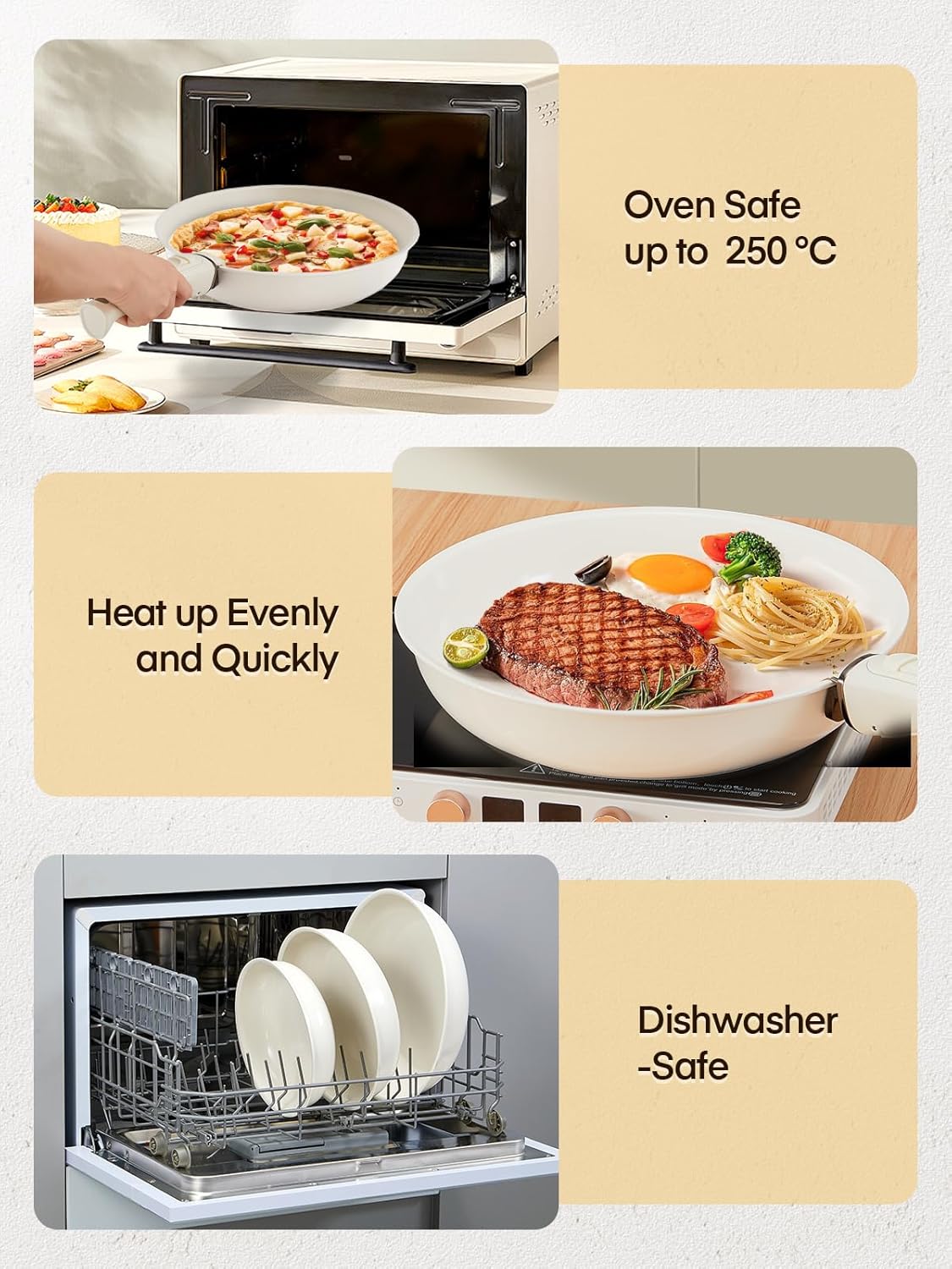- Non-toxic ceramic coating for safe food preparation.