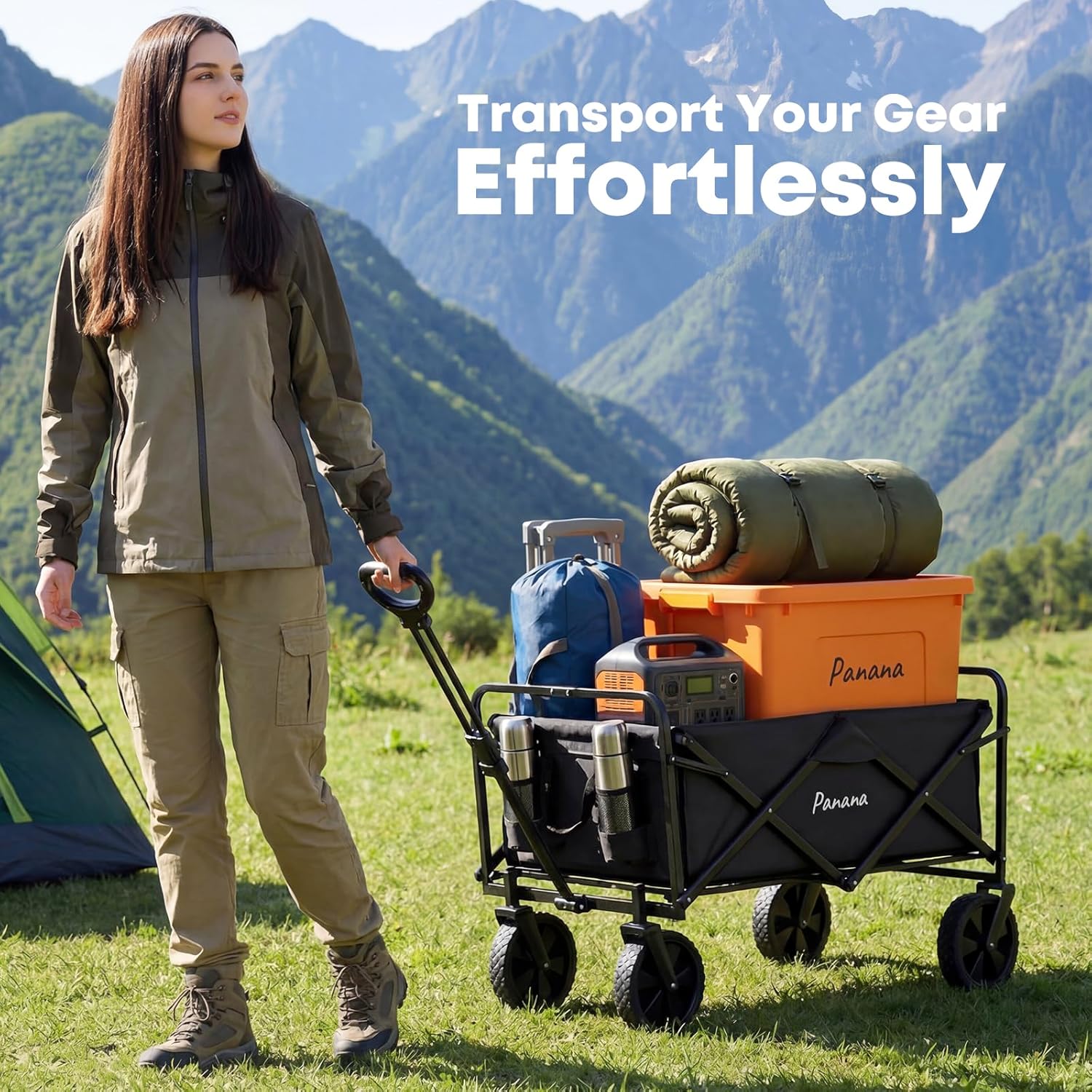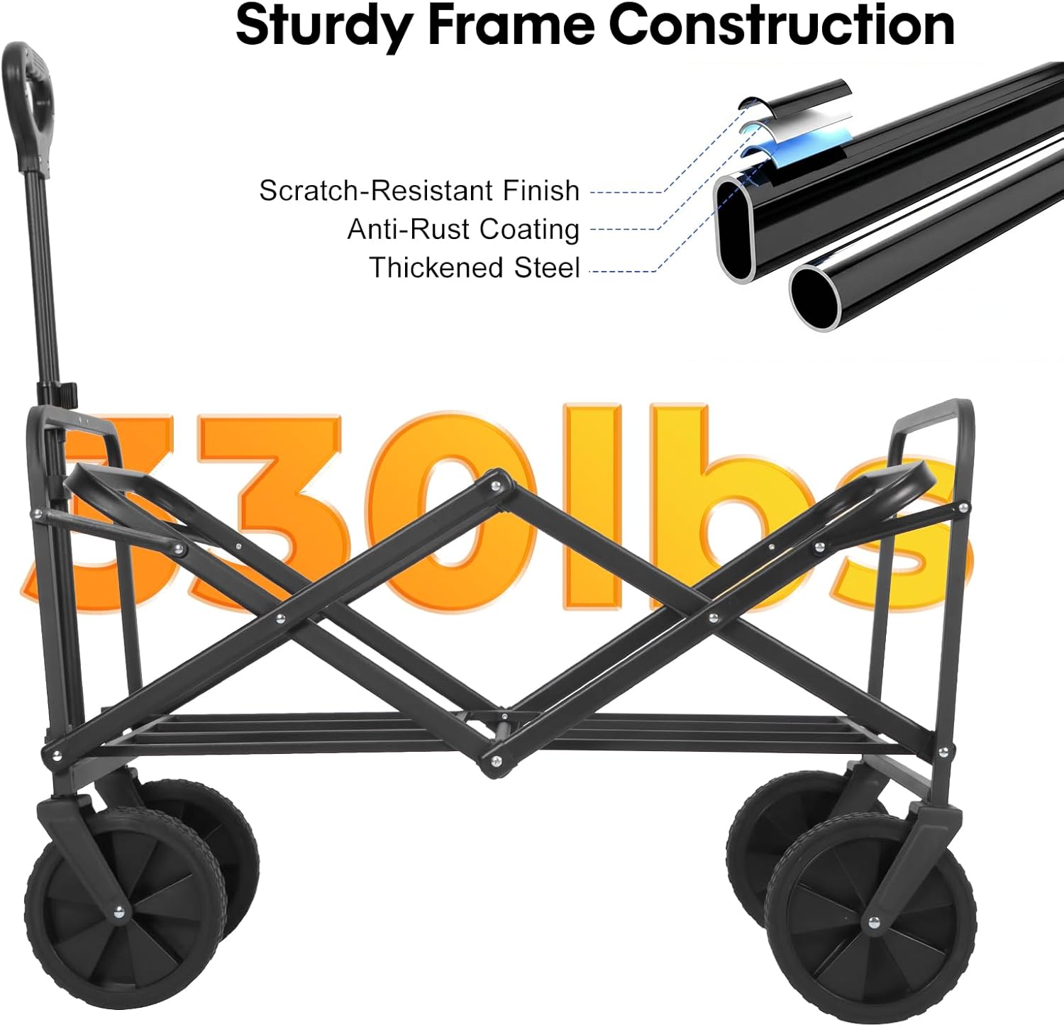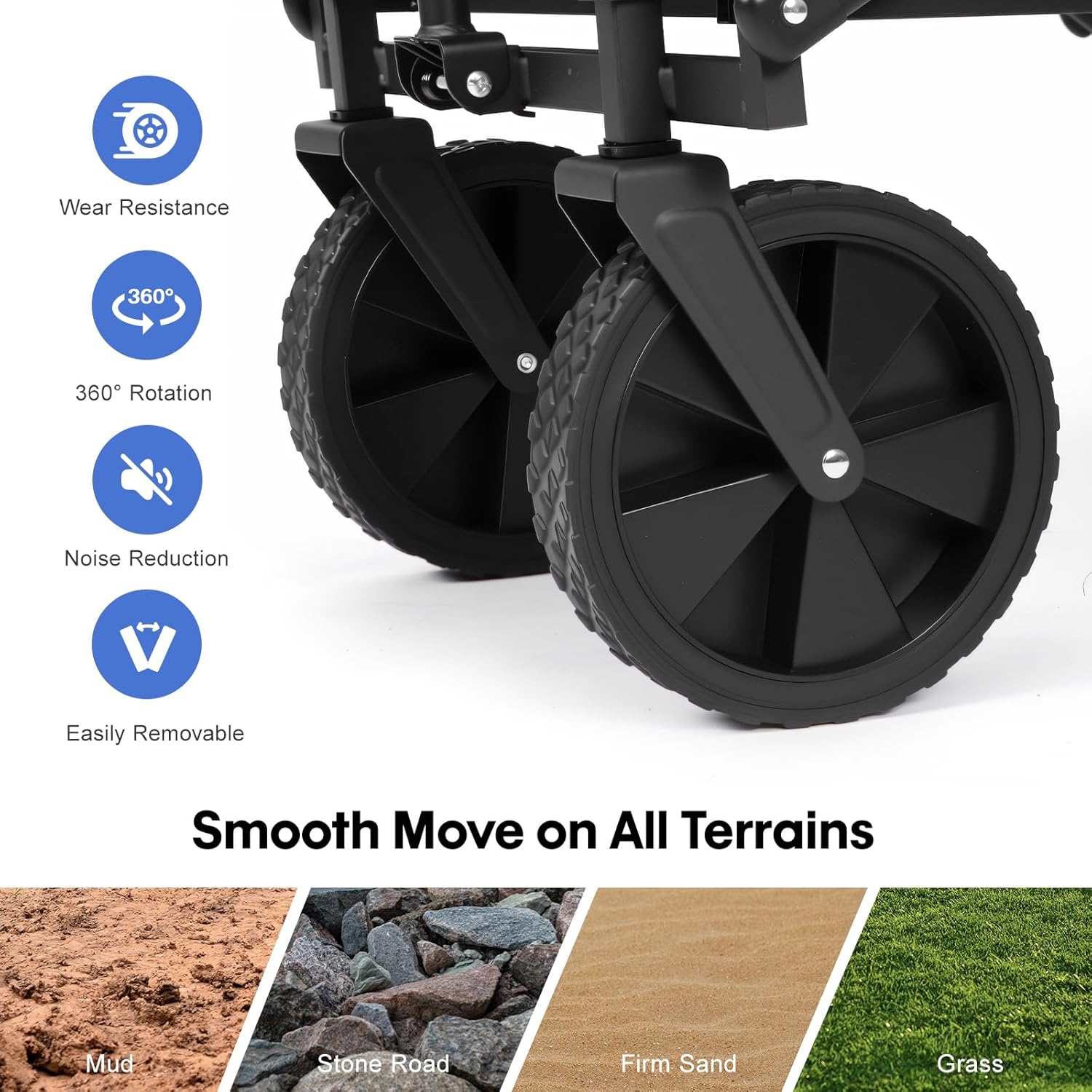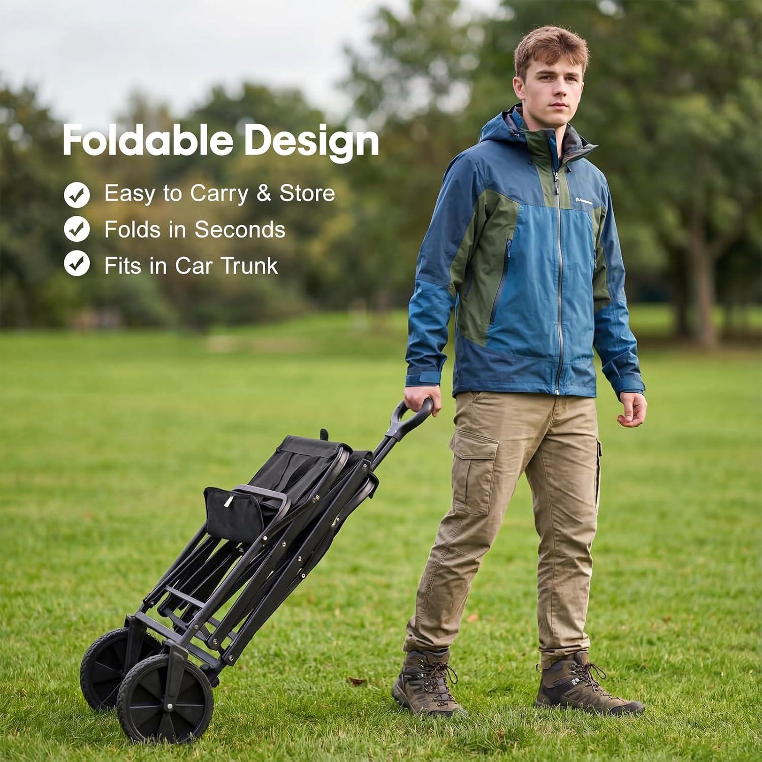 Folding Trolley Utility Wagon Cart with All-Terrain Wheels, 100L Storage Capacity, Heavy-Duty Steel Frame,Garden Wagon Cart 150kg Load Capacity (Black)