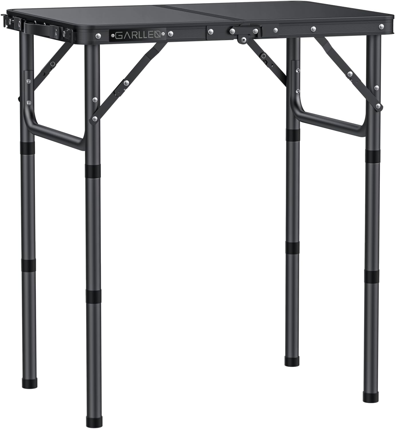The GARLLEN 2ft Folding Camping Table is designed for convenience and portability. Made from lightweight aluminum, it is easy to transport, making it ideal for camping, BBQs, and travel. The table features three height adjustable settings, allowing you to customize it to your needs. With a maximum capacity of 66 lbs, it provides a sturdy surface for various activities.