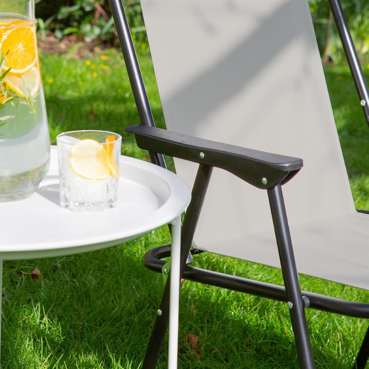 Harbour Housewares Folding Beach Chairs – Beige – Pack of 2 – Metal Outdoor Patio Seat Lightweight Portable Deck Chair for Picnic, Garden, Camping, Fishing