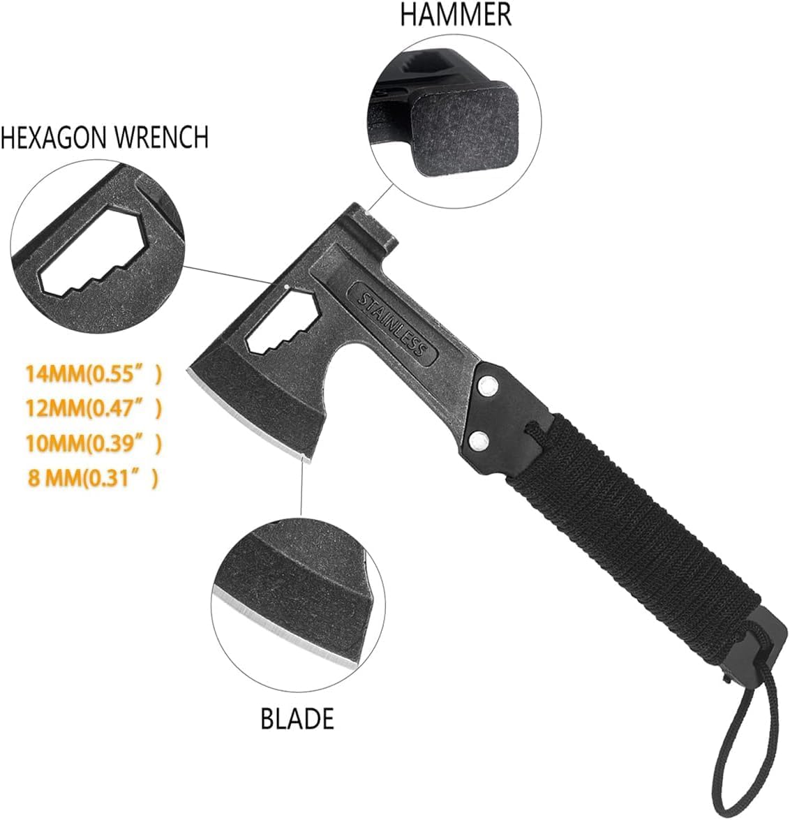 HONZIN Multi Tool Axe, 3 in 1 Multitools with Hammer Hexagonal Spanner, Outdoor, Emergency, Stainless Steel Multitool with Sheath, Camping Essentials Multitool Gifts for Men