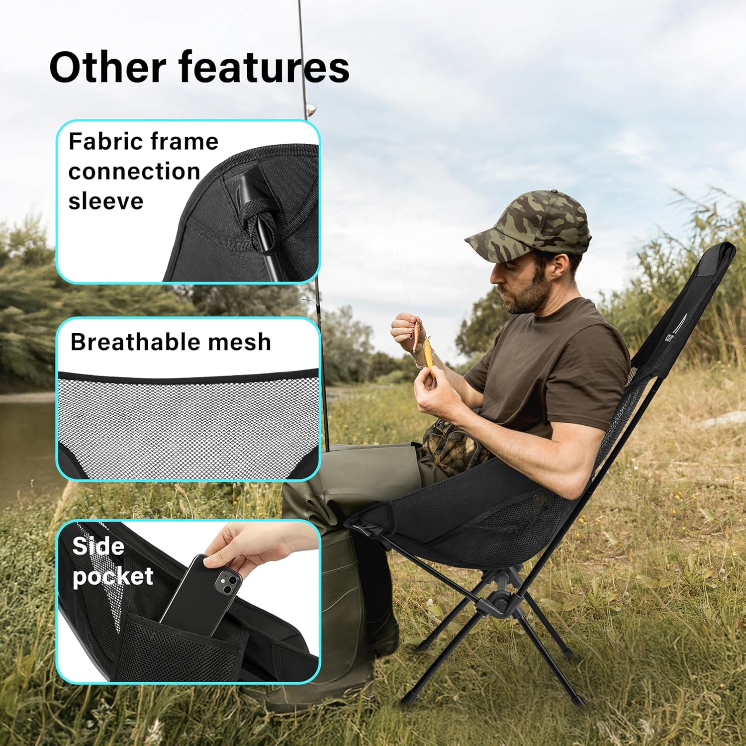 This chair is perfect for camping, fishing, or enjoying a day at the beach, offering a comfortable seating solution wherever you go.