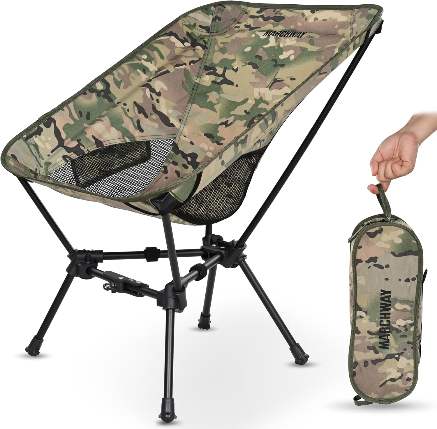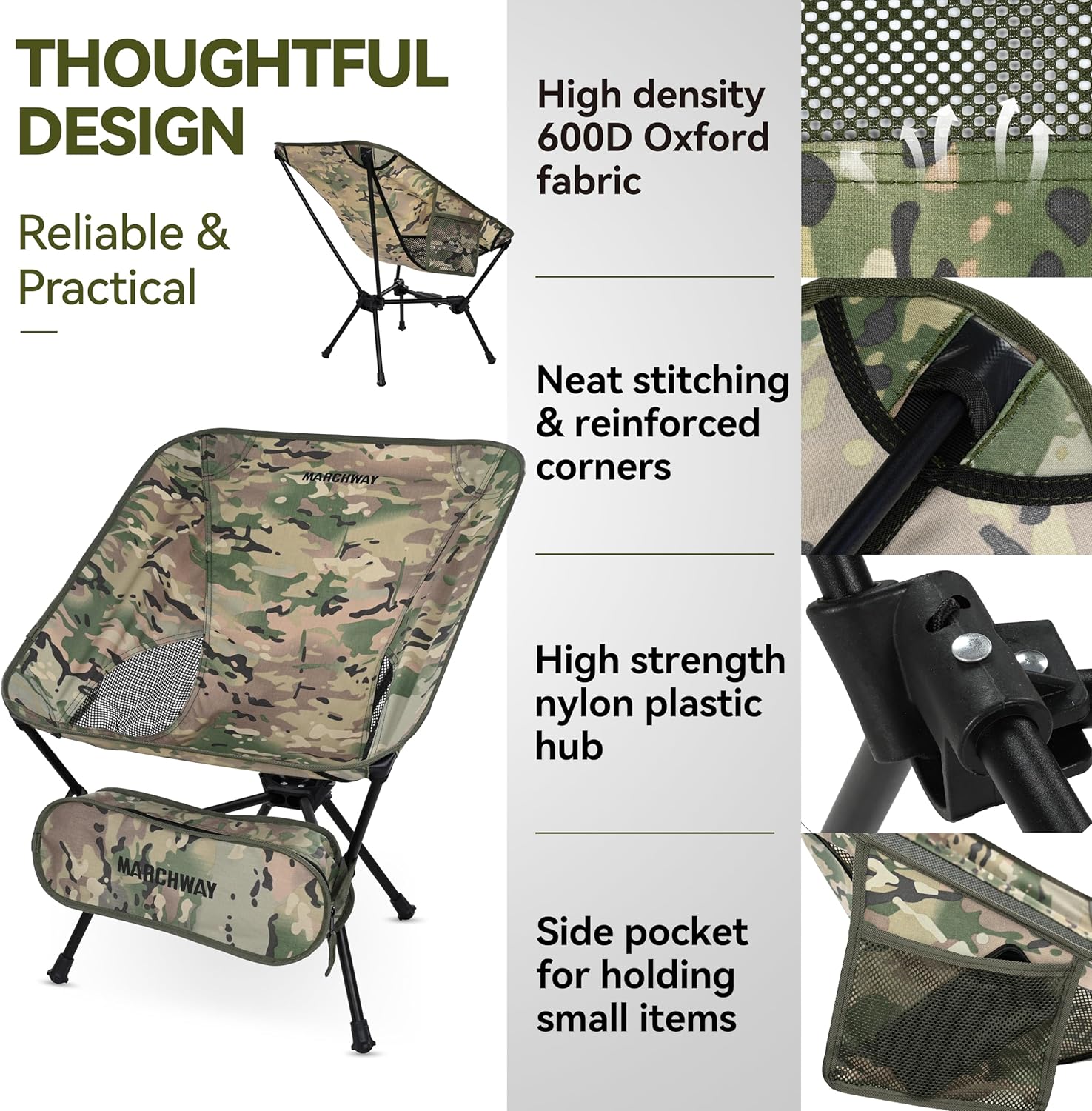 MARCHWAY Lightweight Folding Camping Chair with Spring Lock, Stable Compact Portable for Outdoor Camp, Travel, Beach, Picnic, Festival, Hiking, Backpacking (Lowback Camo)
