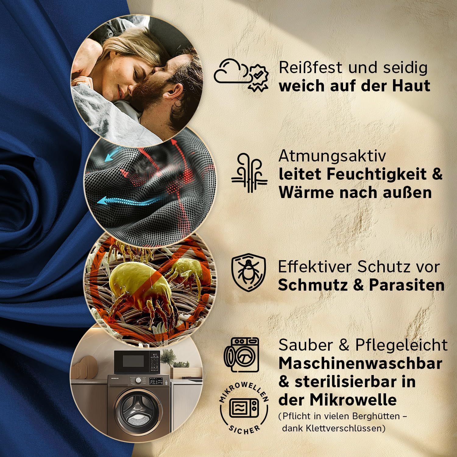 Microfibre Sleeping Bag (Only 230g) – Ultra Light, Small and Slim, Travel Sleeping Bag, Ticking, Insert I Ideal for Hiking, Inns and Mountain Huts