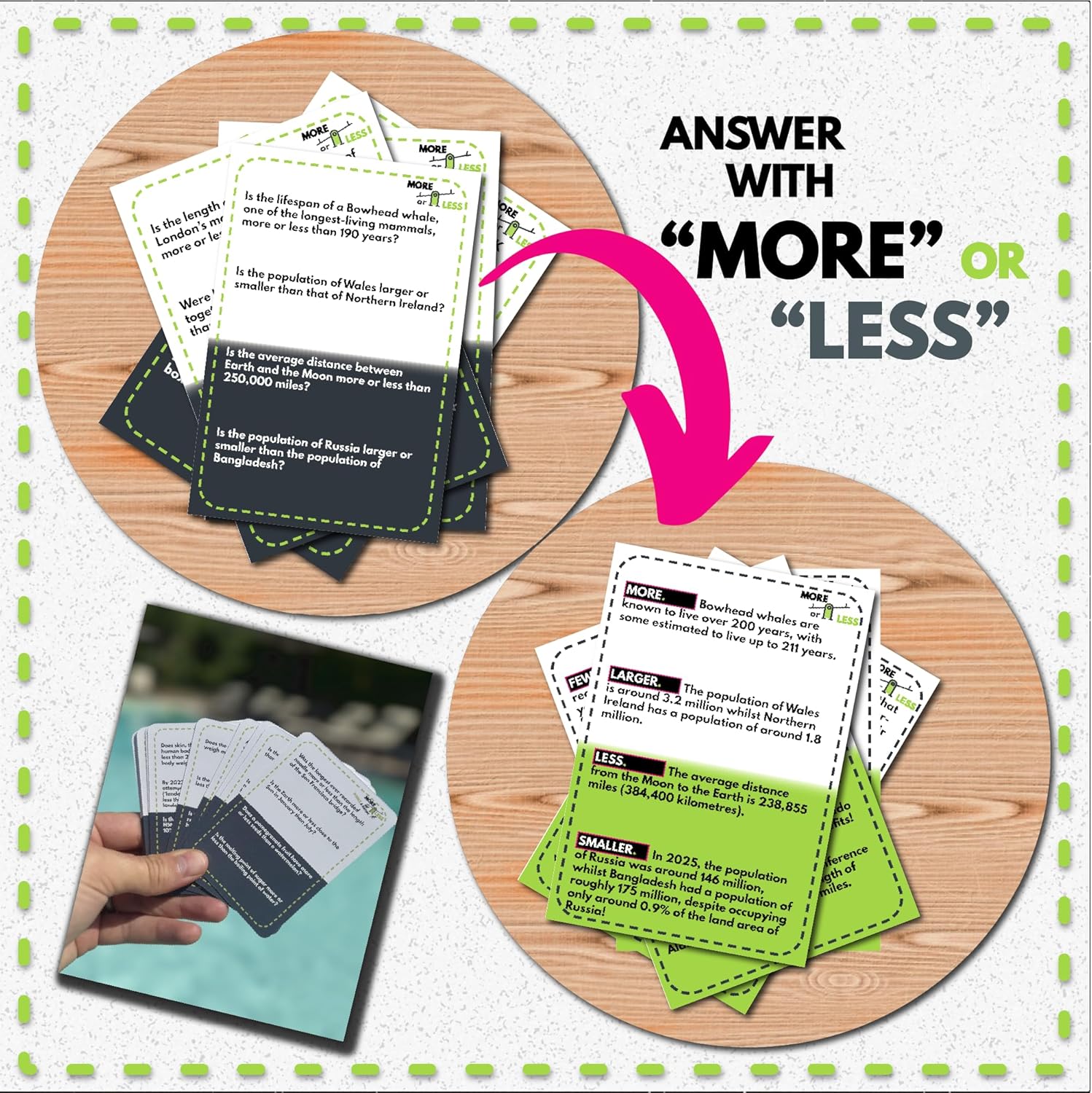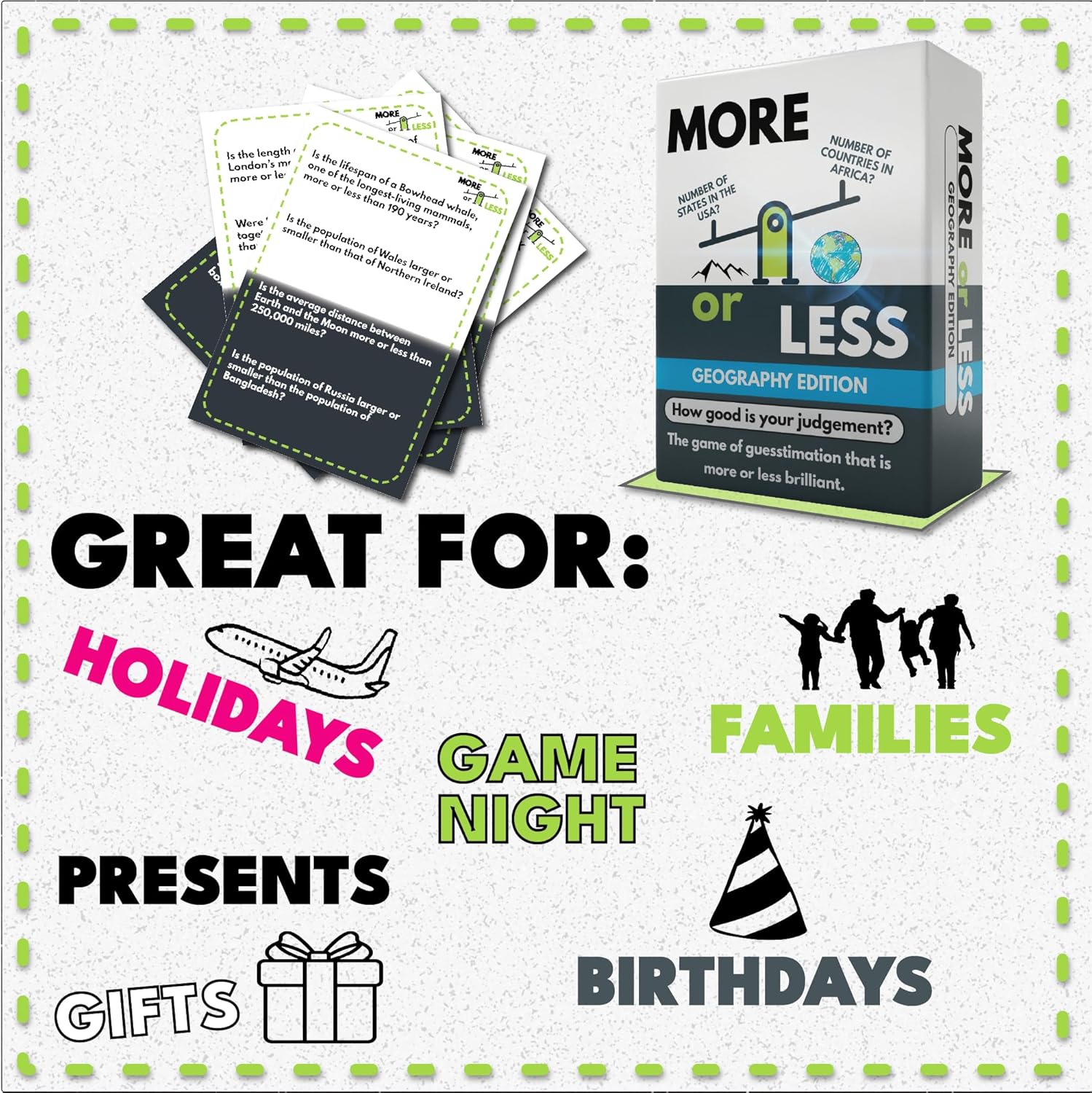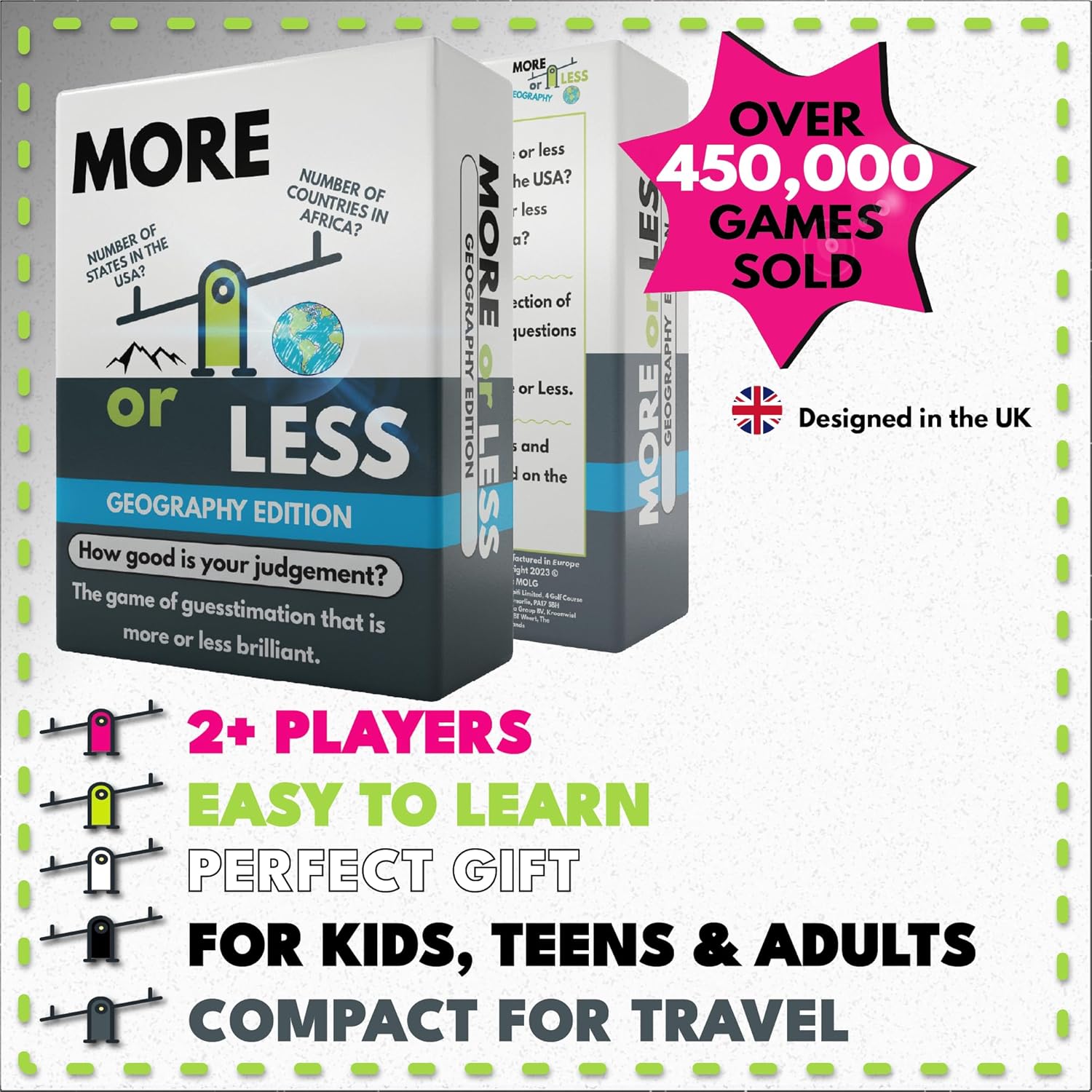 More or Less Geography Edition Card Game | 2 Players + | Travel & Pocket Card Game for Kids, Teens & Adults | Play Anywhere