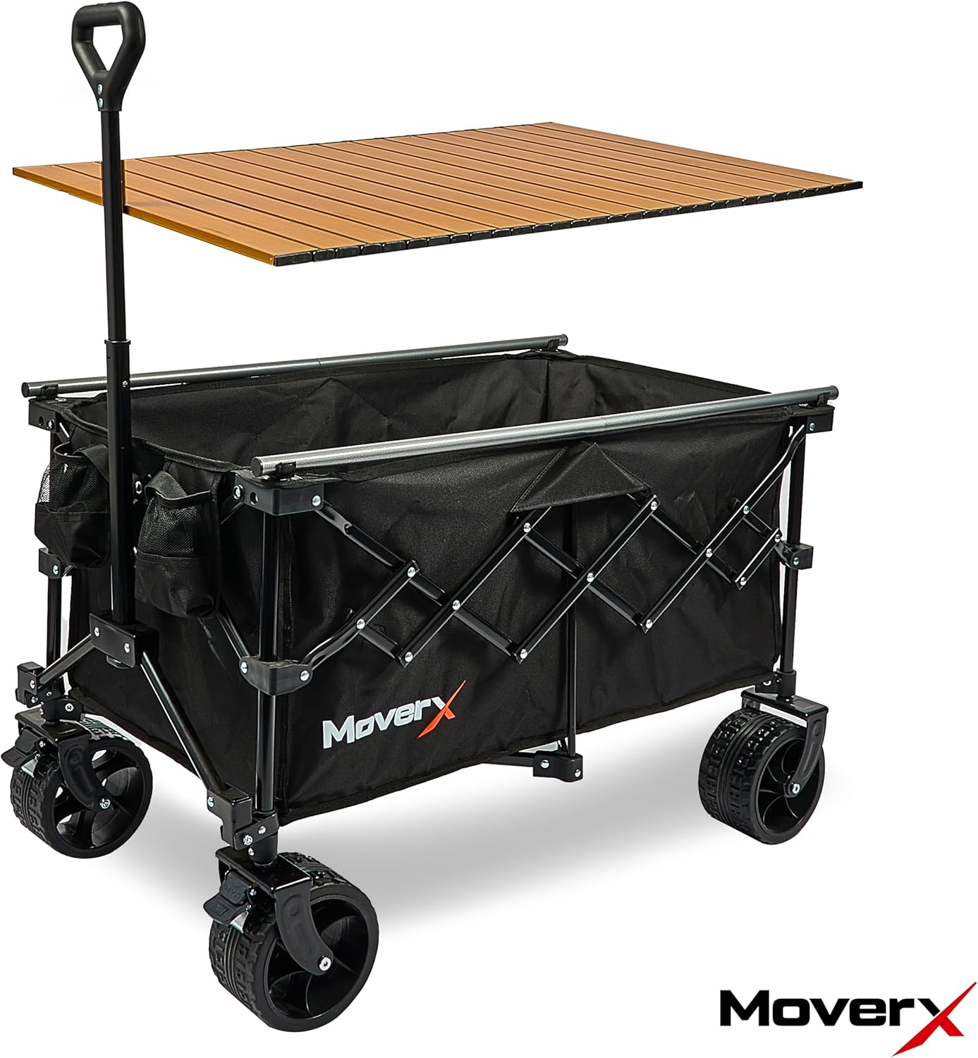 MoverX 200L Camping Trolley on Wheels, Table Folding Wagon, Portable Camping Cart, Foldable Trolly for Festival Beach Outdoor Garden Picnic Shopping Fishing, Wide Wheels, Adjustable Handle, Black