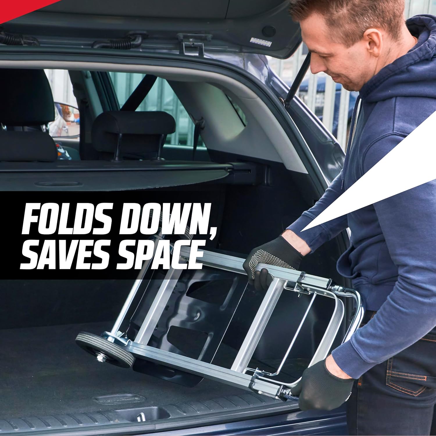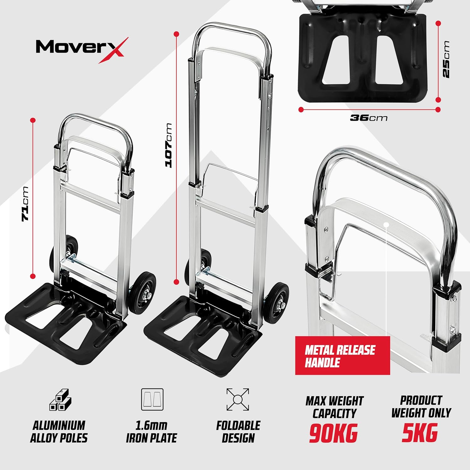 MoverX Folding Hand Truck Aluminium, Heavy Duty Hand Truck Foldable Trolley on Wheels, Multi Purpose Sack Truck Moving Trolley, 90kg