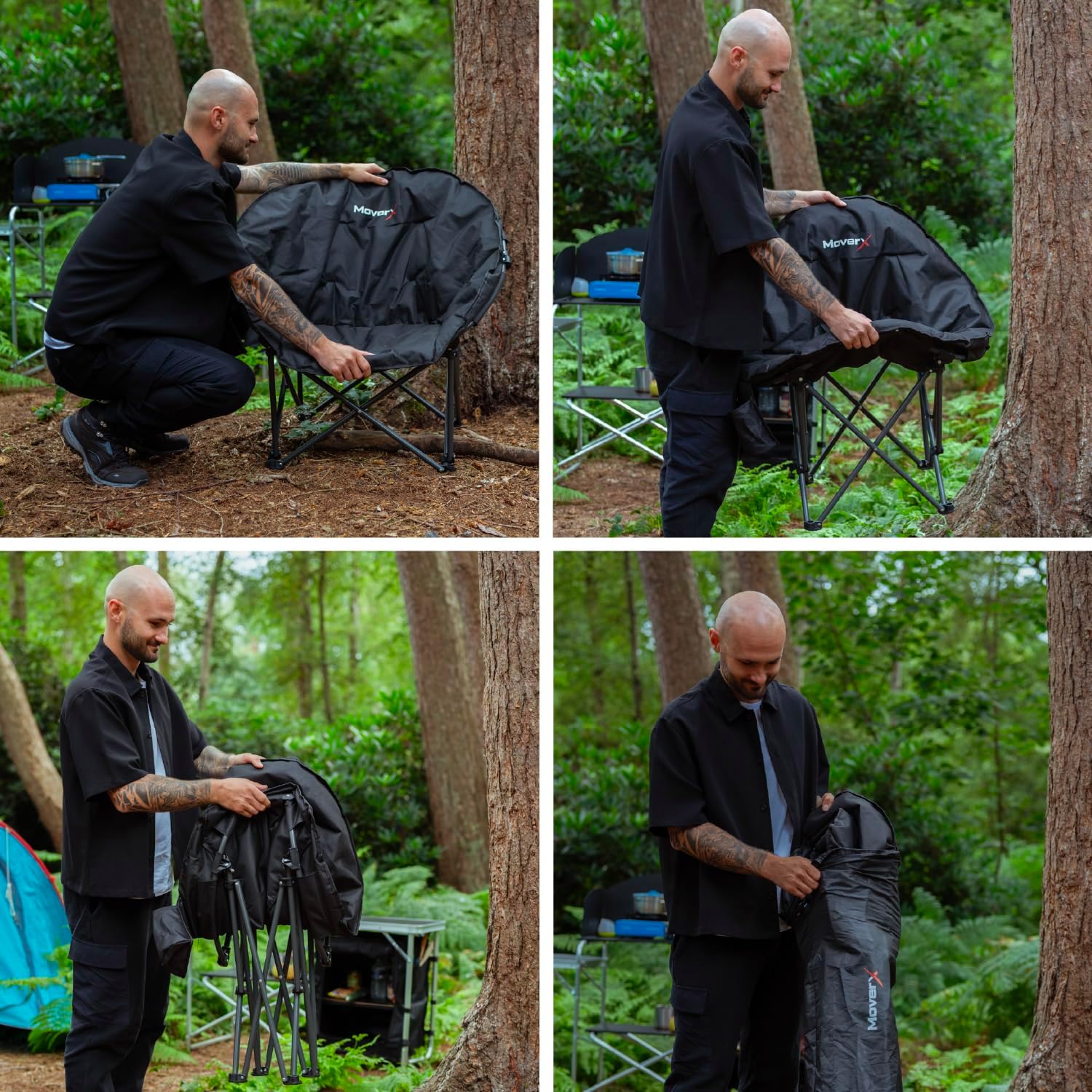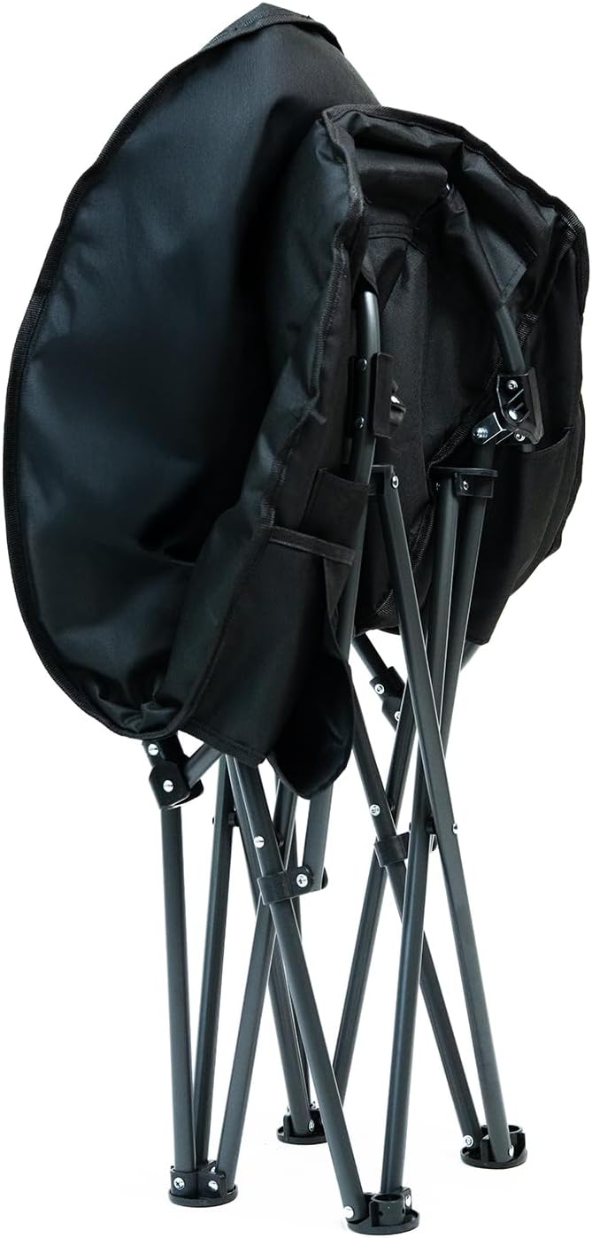 MoverX Lightweight Moon Camping Chair, Padded Armchair, Folding Chair, Camping Chairs for Adults, Foldable Garden Outdoor Picnic Festival Camp Chairs, Comfy with Pocket, Black