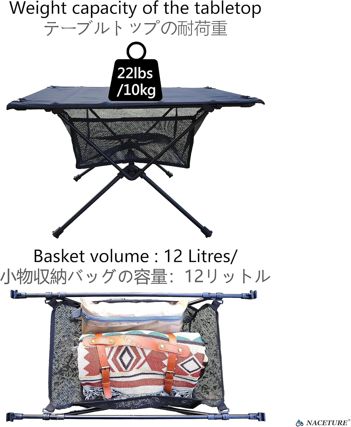 NACETURE Ultralight Backpacking Table – Collapsible Camping Table with Storage Mesh for Camping Gear Accessories, Hiking, Mountaineering, Outdoor Travel