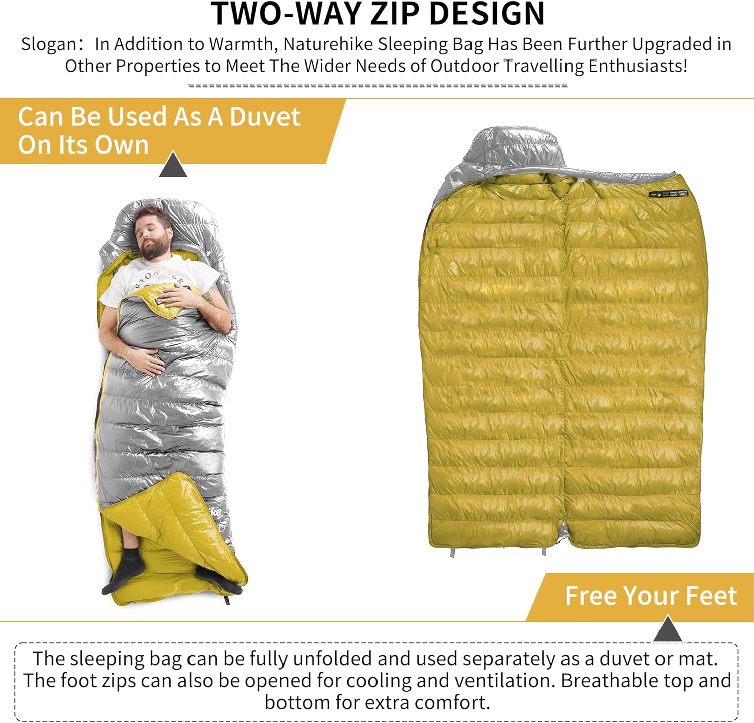 Naturehike CW400 Lightweight Down RDS Sleeping Bags for Adults 650 Fill Power 4 Season,900g 6℃ Ultralight Compact Portable,Waterproof, Camping, Hiking, Backpacking With Compression Bag