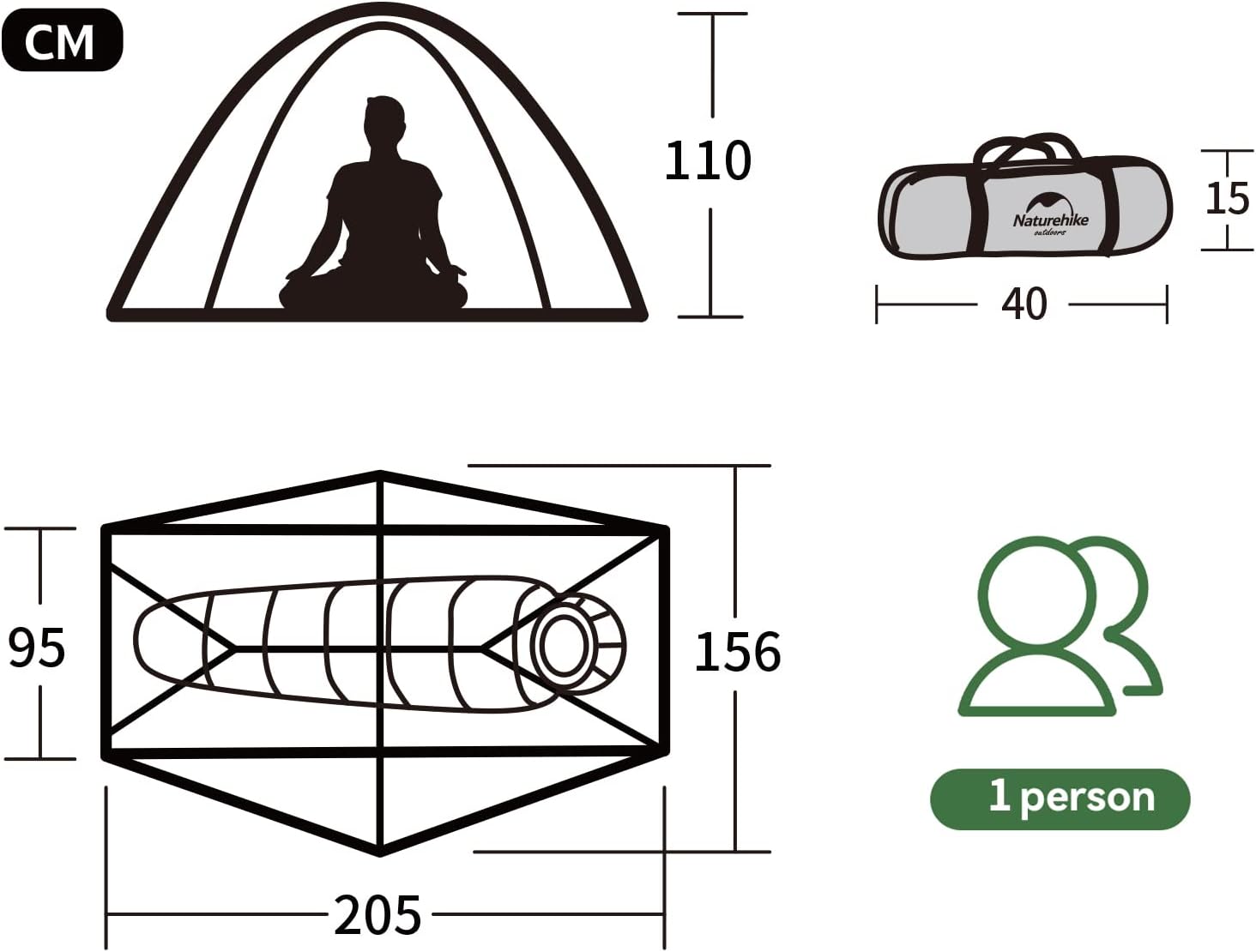 Naturehike Ultralight Tent, 1 Person Dome Tent, Waterproof for Backpacking, Trekking with 3 Seasons, Easy Setup for Hiking, Portable, Anti UV Double Layer Camping Tent