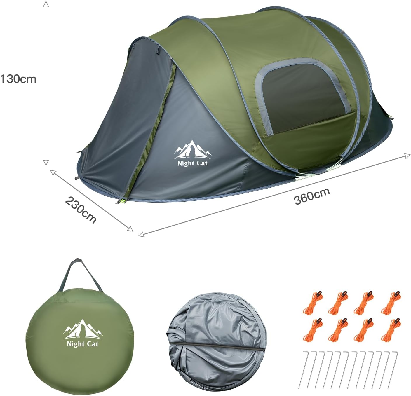 The Night Cat Pop Up Tent is designed for easy setup and convenience, making it ideal for various outdoor activities like picnics, festivals, and camping. This tent accommodates up to four people, providing ample space for your group. With a waterproof design, it ensures you stay dry in unexpected weather. The tent's ventilation features help maintain airflow, enhancing comfort during your stay.