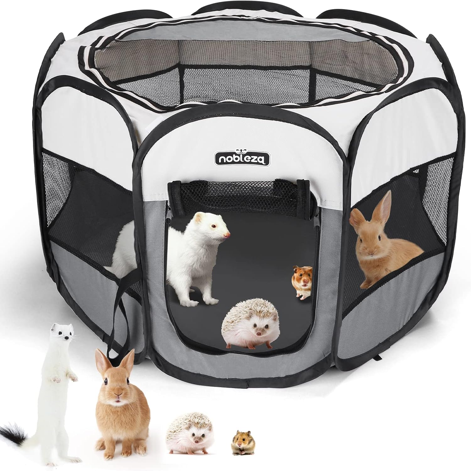 The Nobleza Pet Playpen is designed for both indoor and outdoor use, providing a safe space for your pets. Made from breathable mesh, it ensures good ventilation while keeping your pets secure. This portable and foldable pen is easy to set up and take down, making it convenient for travel or storage. The dimensions of 24.4x24.4x17.7 inches make it suitable for small pets like puppies, kittens, rabbits, and guinea pigs.