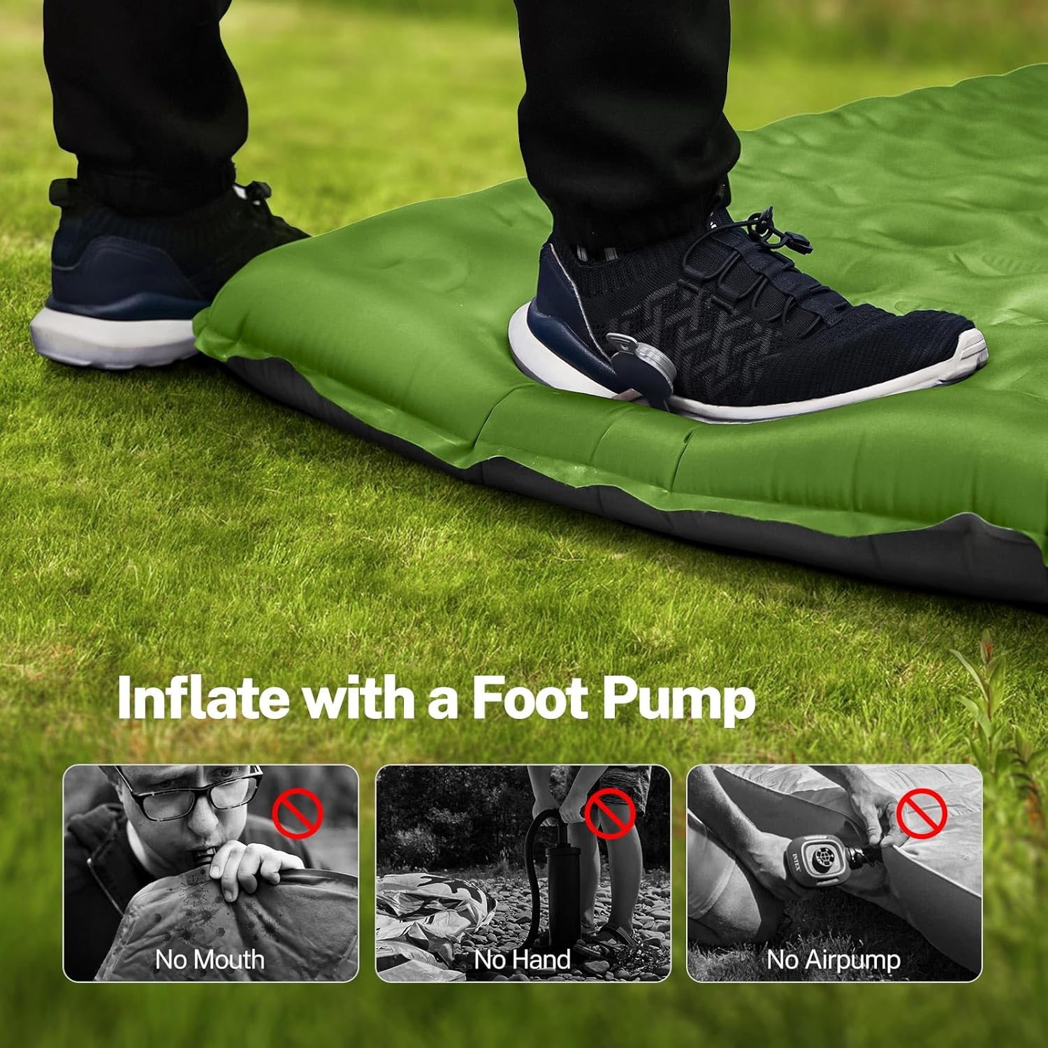 OGERY Camping Mat, 15cm Extra-Thick Reinforced Camping Sleeping Pad with Pillows & Built-in Foot Pump, Ultralight Self Inflating Mattress for Tent Hiking Essentials Gear
