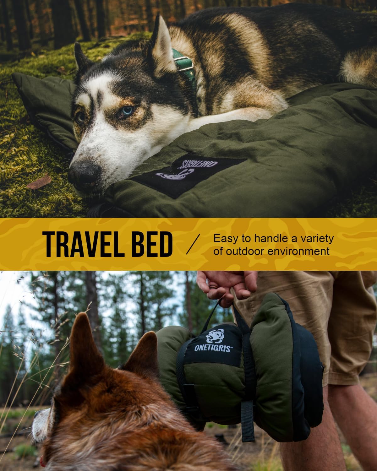 OneTigris Dog Bed Travel Large, Portable Dog Bed Camping for Washable Durable Oxford Portable Sleeping Mats for Car Crate Sofa also For Indoor Outdoor Camping Travel Green (M)