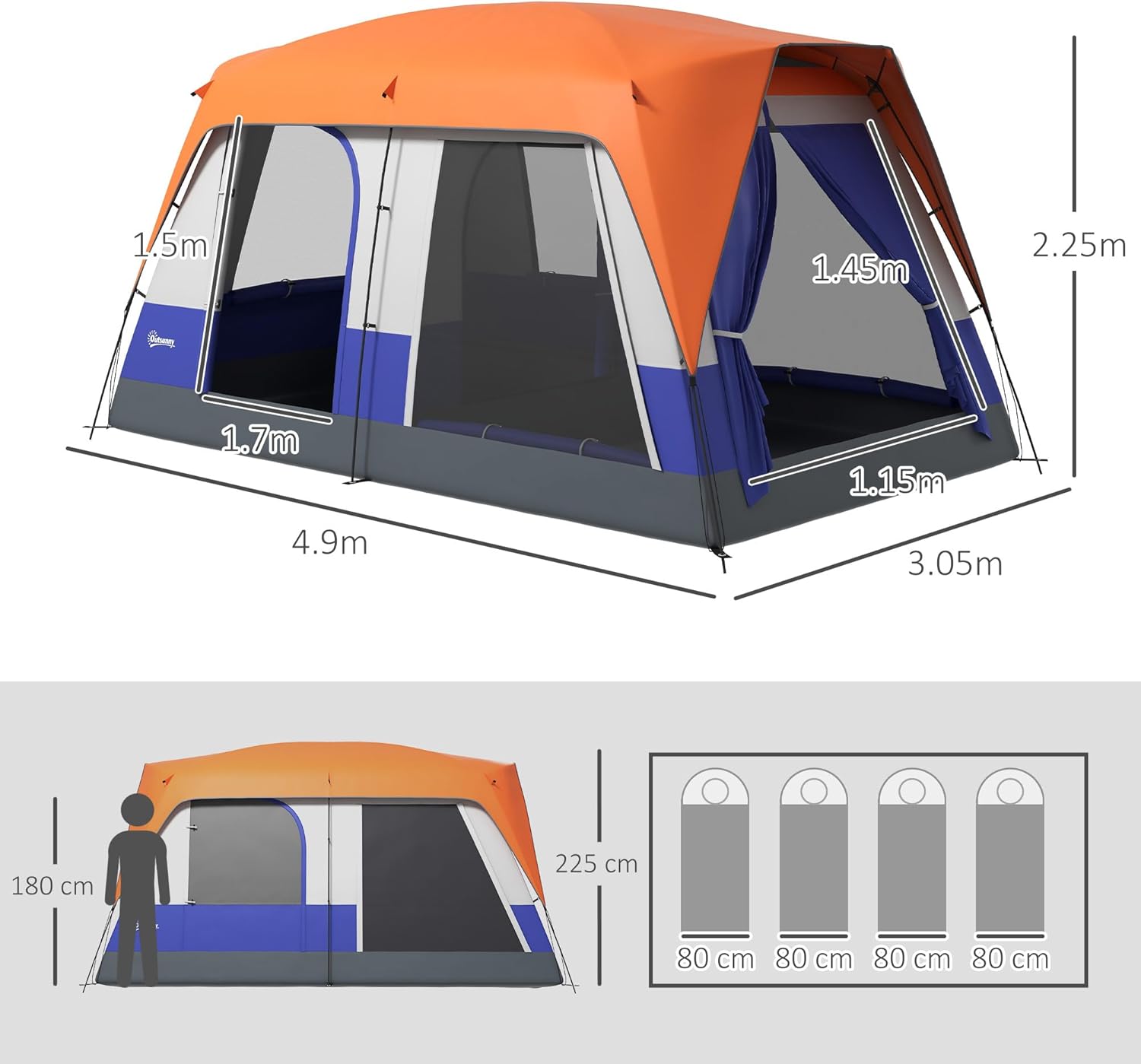 The Outsunny 6-7 Man Camping Tent is designed to provide a spacious and comfortable shelter for your outdoor adventures. With a generous size, it can accommodate up to six people, making it ideal for family camping trips. The tent features a robust 3000mm waterproof fabric that ensures you stay dry during unexpected rain showers. For added convenience, it comes with a removable rainfly and a lantern hook for nighttime illumination.
