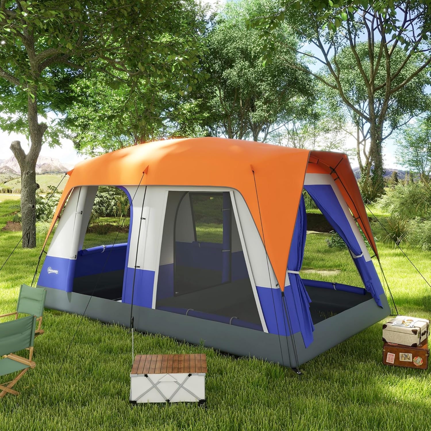 Outsunny 6-7 Man Camping Tent with 2 Rooms, 3000mm Waterproof Family Tent with Sewn in Groundsheet and Top Light Hook, Portable with Bag, for Fishing Hiking Festival
