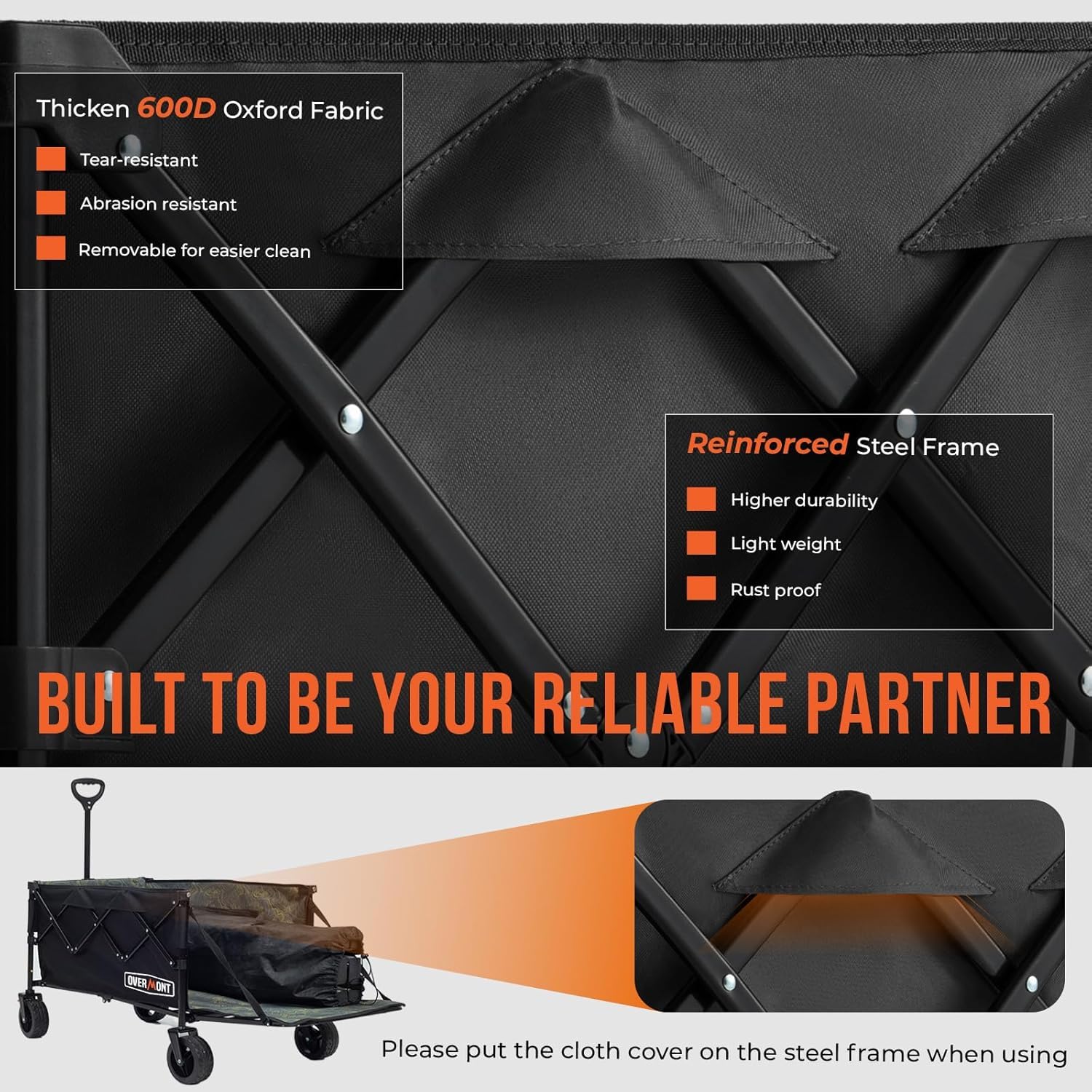 Overmont 100L Festival Camping trolley on Removable wheels – Pull Along Collapsible Wagon Cart with Adjustable Handle – 220LBS/100kg Large Capacity for Beach Garden Picnic Shopping,Sports, black