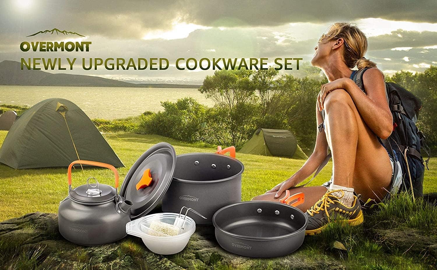 The OVERMONT Camping Cookware Set is designed for outdoor enthusiasts who enjoy cooking while on the go. This ultralight mess kit includes a kettle, pots, and pans, making it ideal for backpacking, hiking, picnics, and fishing trips. Its portable design ensures that you can easily carry it without adding much weight to your gear.