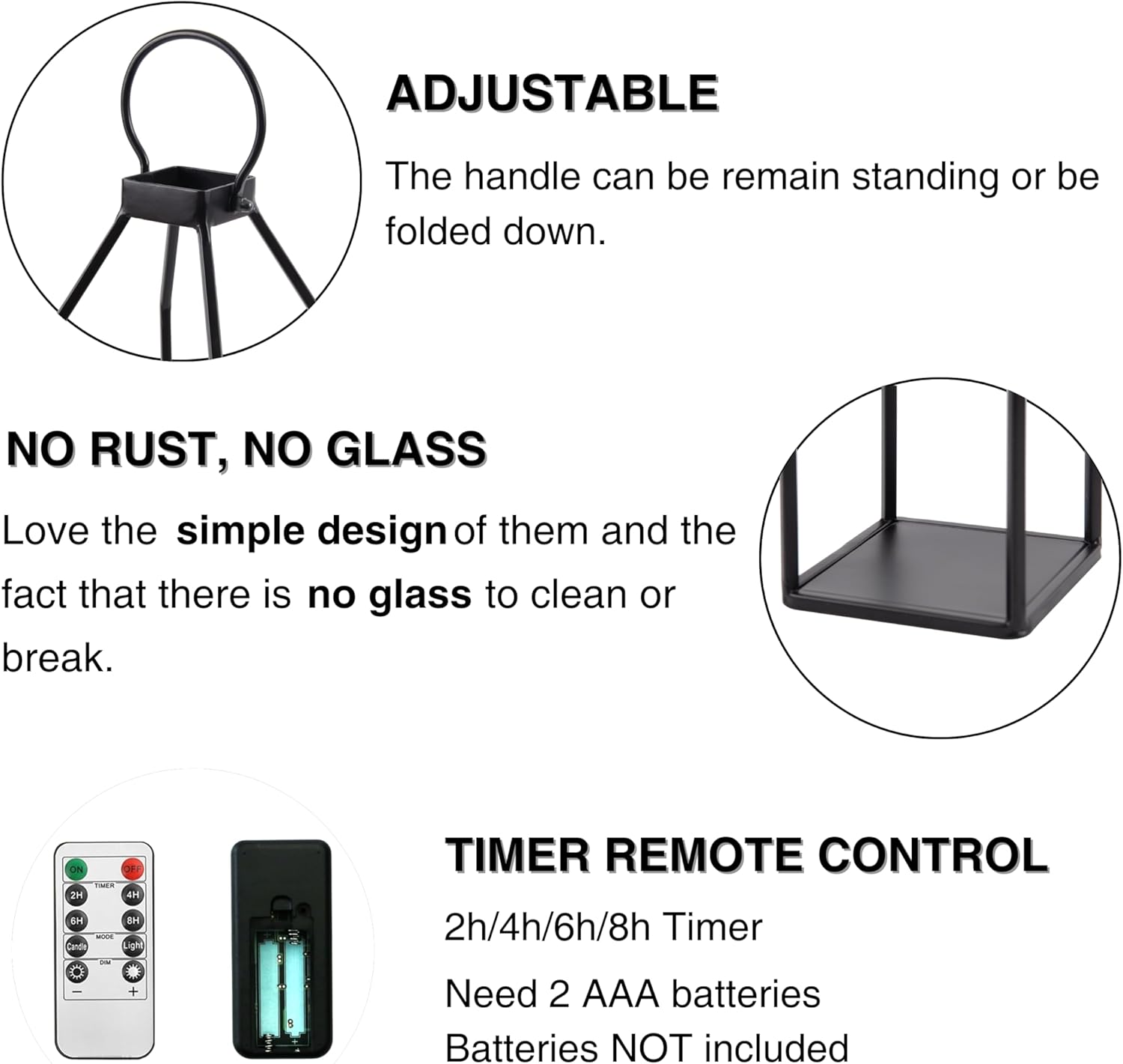 Introducing the Perfnique Modern Farmhouse Lantern Decor, a perfect addition to enhance your outdoor and indoor spaces. These lanterns are crafted from high-quality black metal, ensuring durability and a stylish look. Each set includes two lanterns and two LED flickering flameless candles with a convenient 6-hour timer, making them ideal for creating a cozy atmosphere.