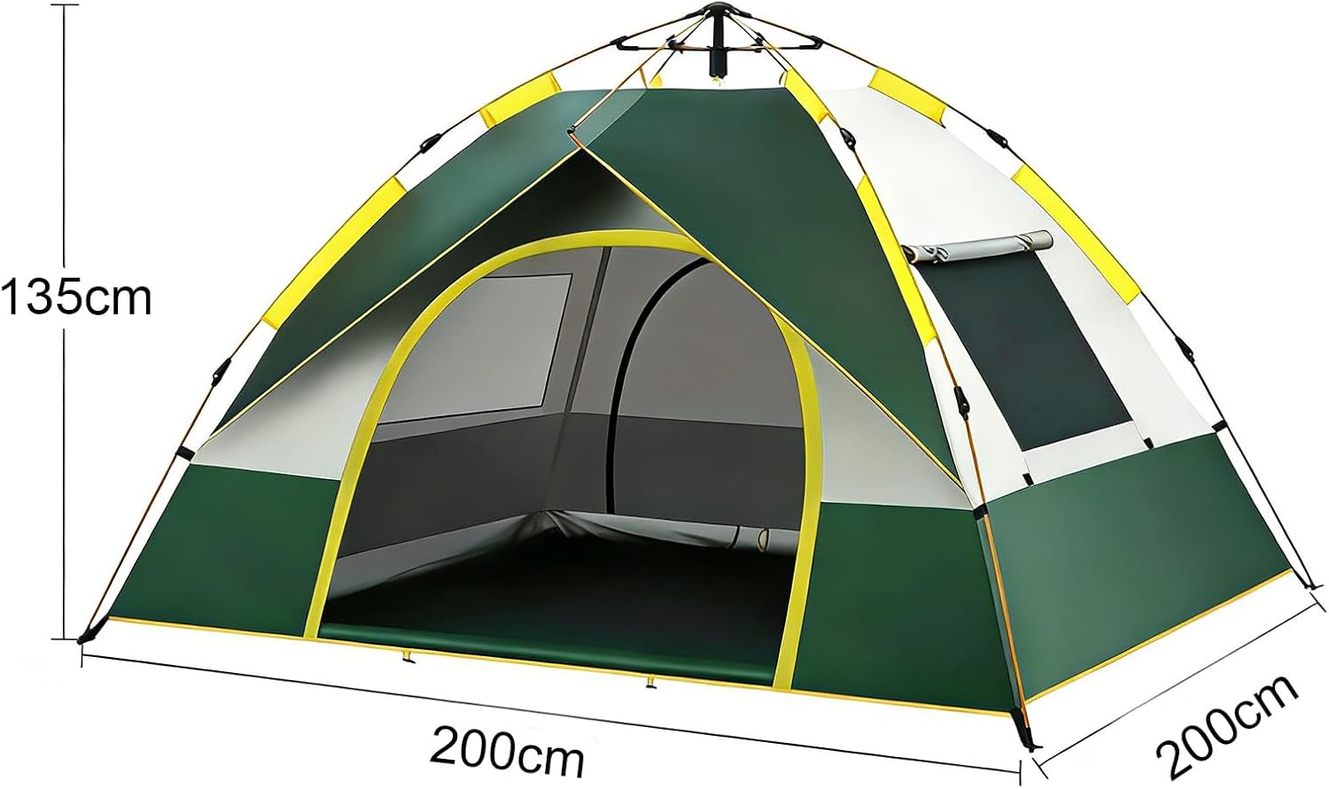 Pop Up Tent for 3-4 Person, 2 Seconds Quick Setup, Waterproof Windproof Family Camping Tent with Black Inner for Sun Protection, Spacious 3-4 Man Tent with 2 Doors & Windows 200 * 200 * 135cm