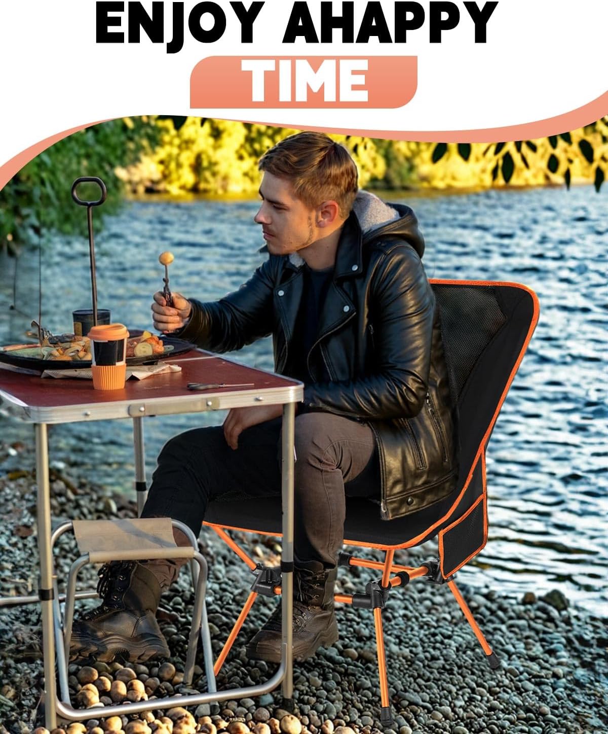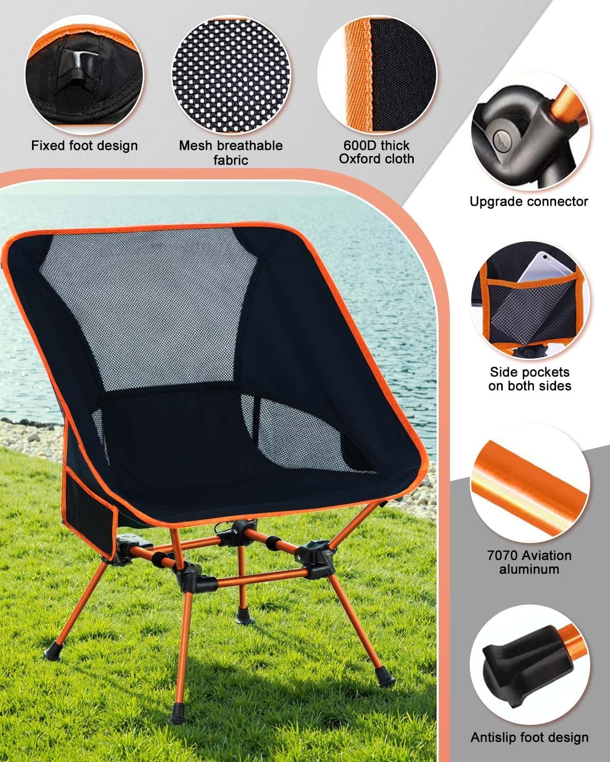 Portable Folding Camping Chairs, Ultralight Aluminum Folding Chairs, with 3 Sides Breathable Mesh & Side Pocket, Backpack, for Outdoor Camping, Picnic, Travel, Hiking, 150KG Load Capacity