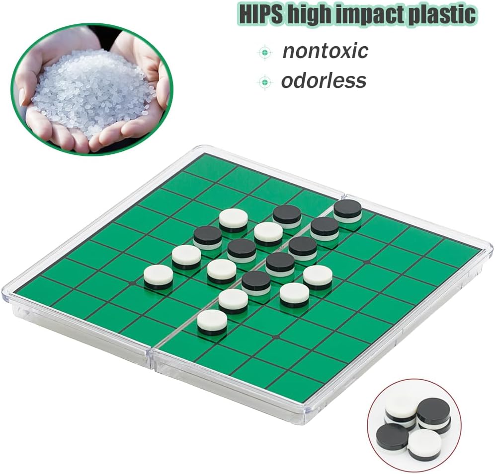 Reversi Board Game Set -15 Centimeters, Mini Magnetic Folding Portable Travel Board Game for Kids – Pocket Crystal Style