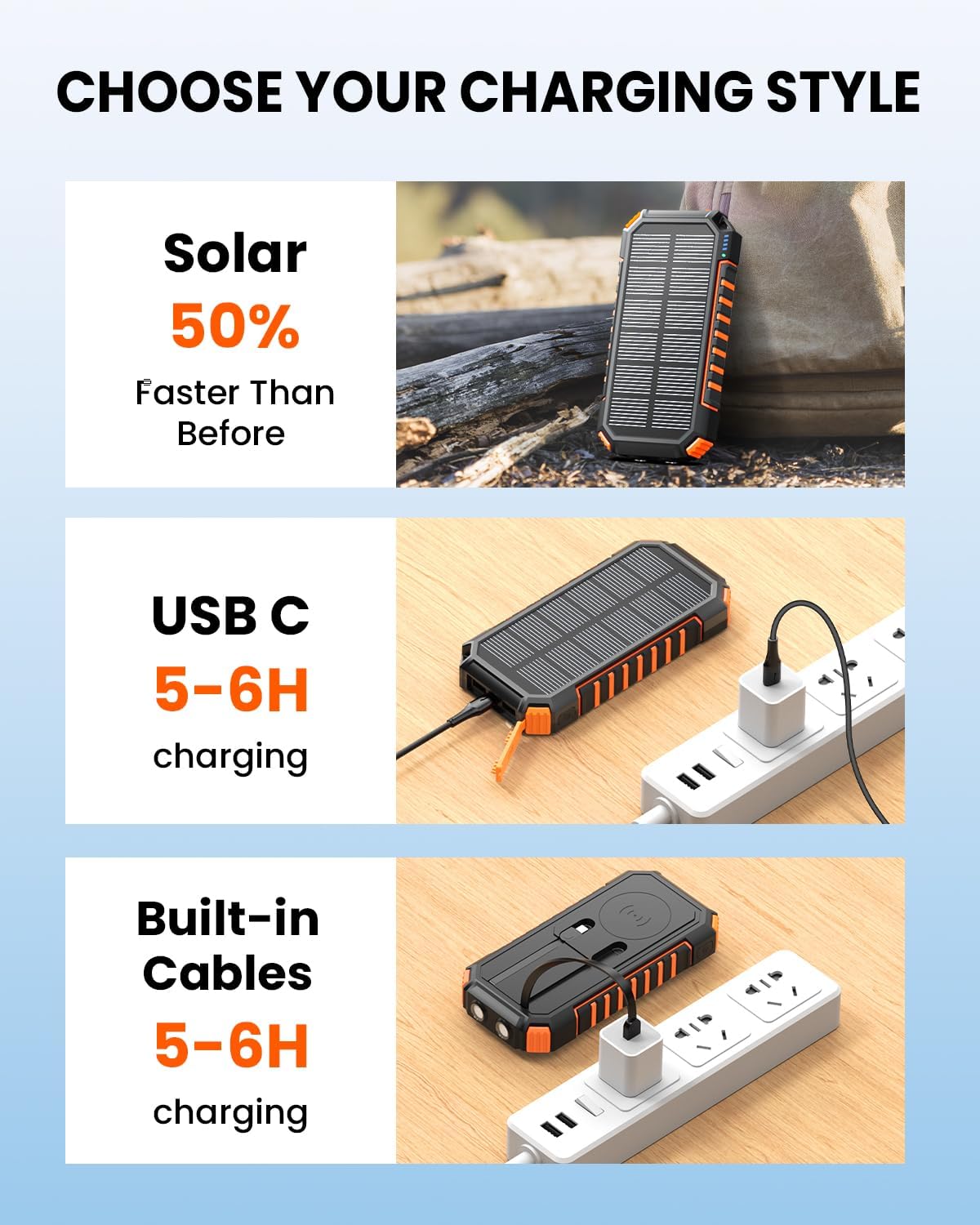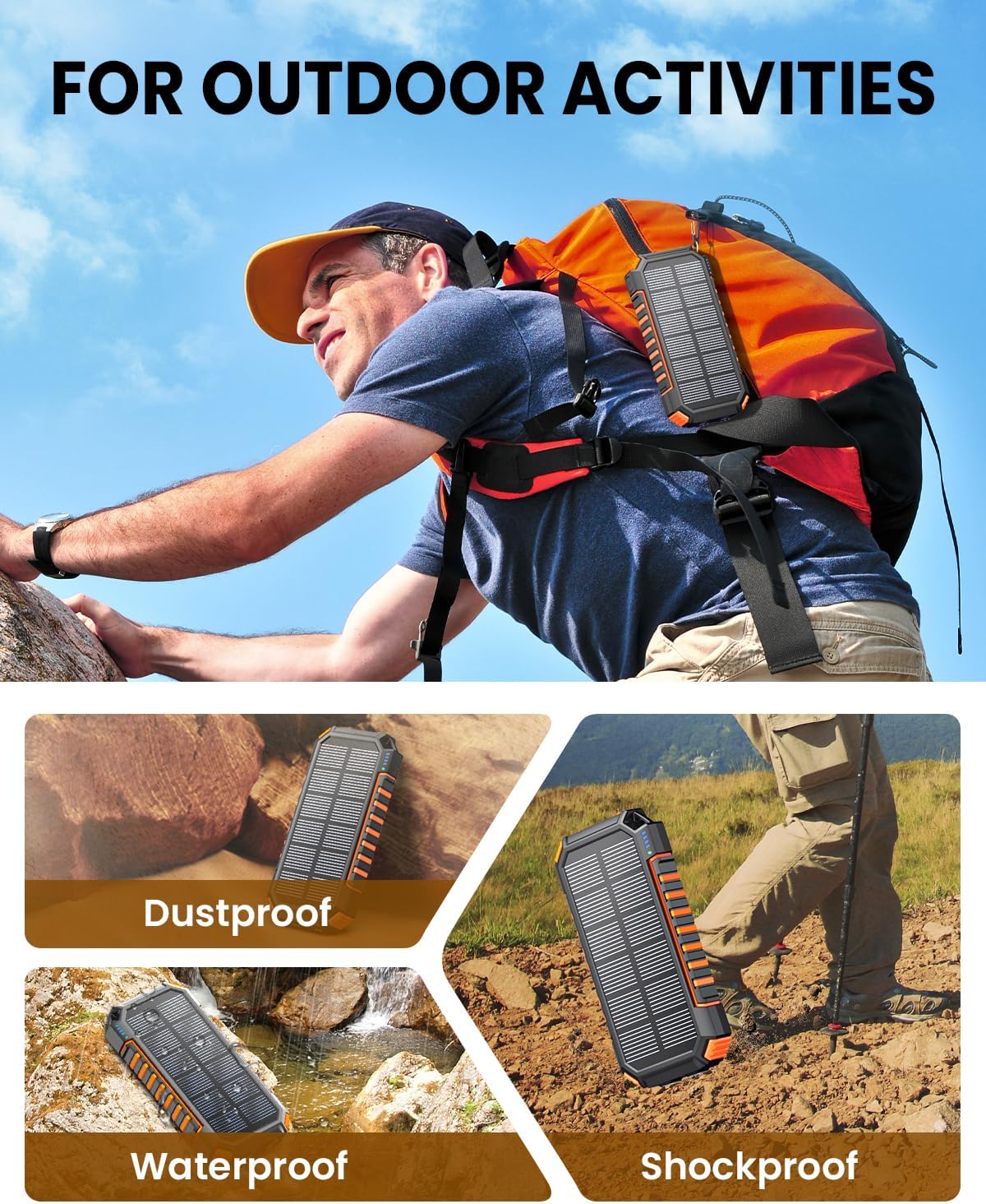 - High capacity of 20000mAh for multiple charges