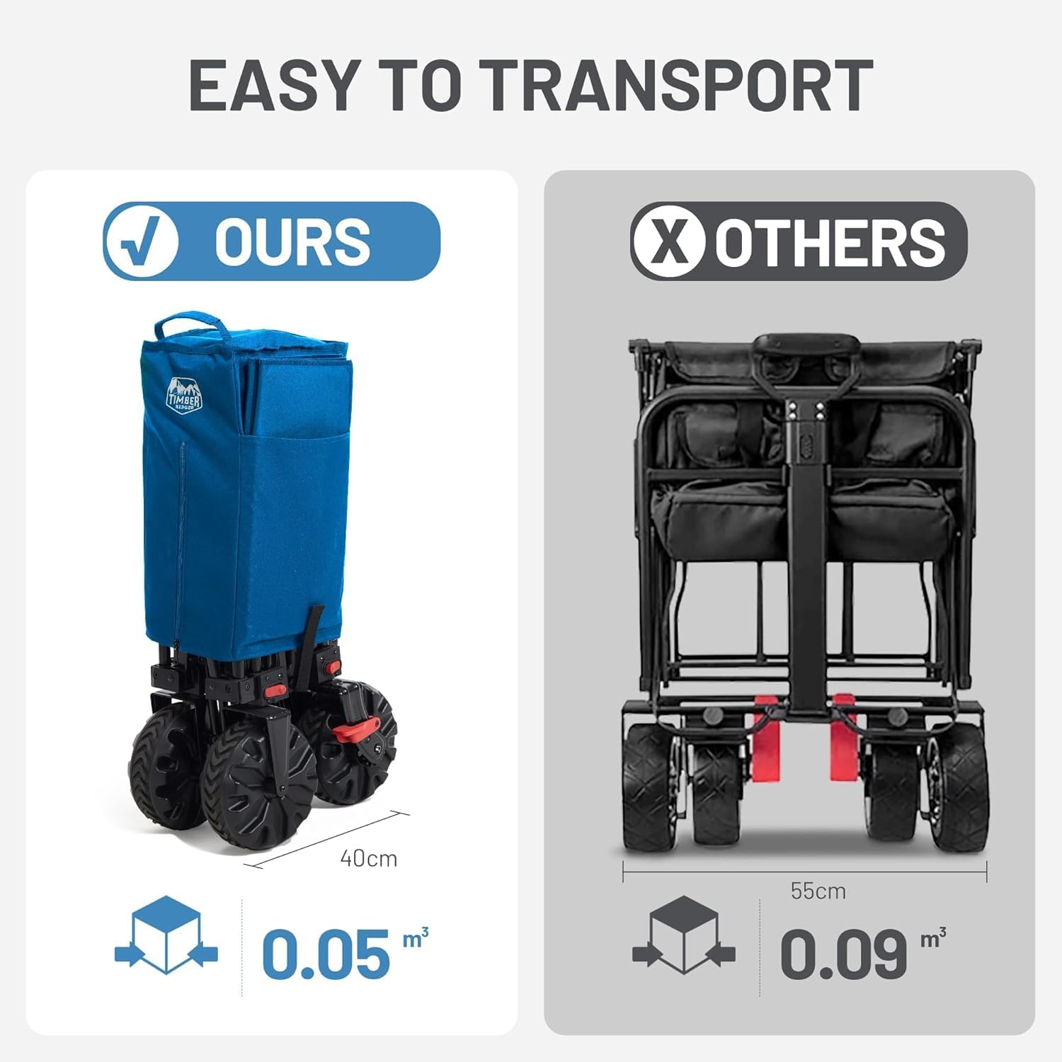 TIMBER RIDGE Festival Trolley on Wheels with Brakes, 200L Folding Camping Trolley Cart with Adjustable Handle & Cover Bag, 100kg Heavy Duty Cart Wagon for Shopping Outdoor Garden Picnic
