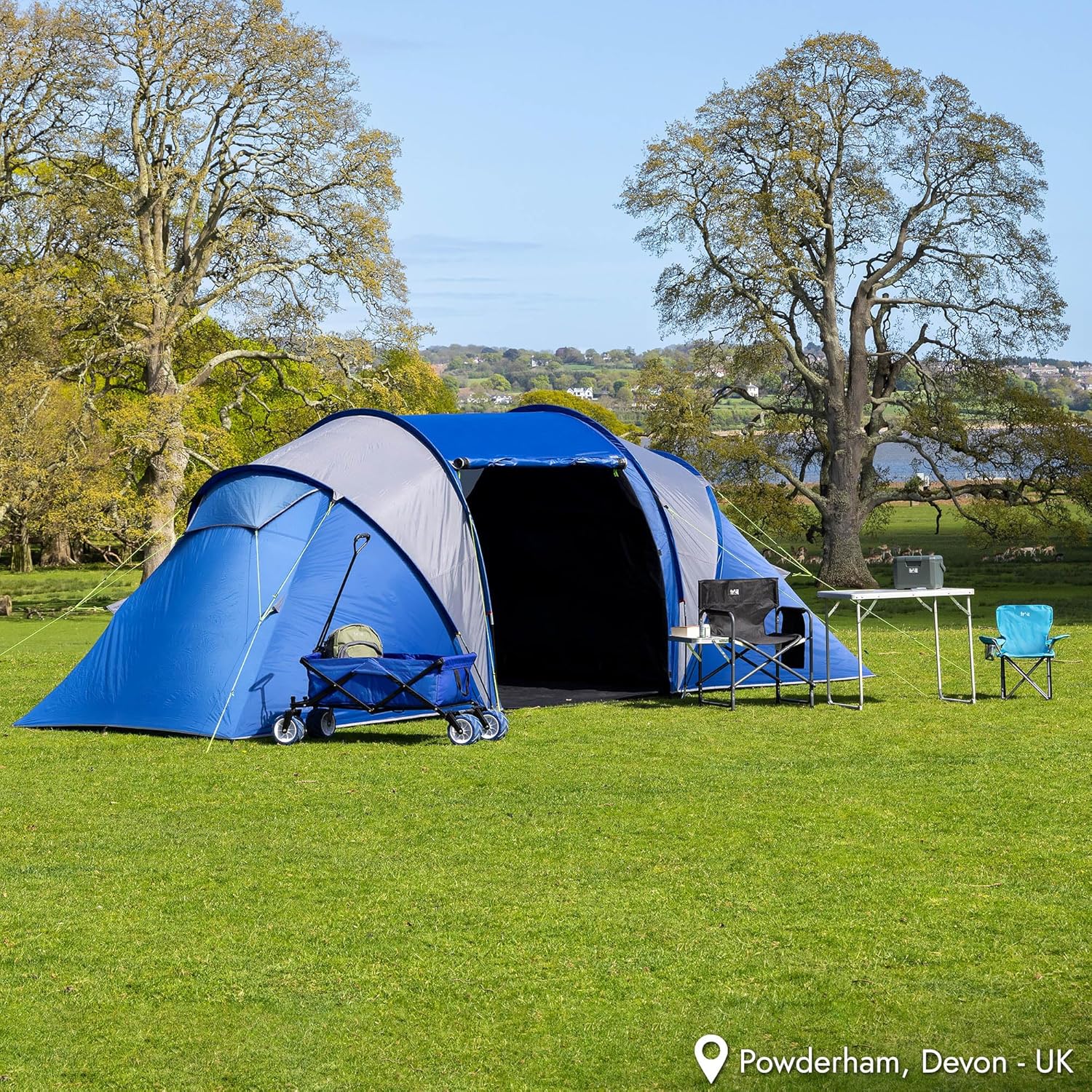 The Trail Hartland XL 6 Man Tent is designed for family camping, offering ample space and comfort. With a waterproof rating of 3000mm, it ensures you stay dry during unexpected rain. The tent features two darkened bedrooms, perfect for a restful night's sleep. The living area is spacious, allowing for relaxation and storage of gear. Additionally, it includes a king pole awning, providing extra shelter at the entrance.