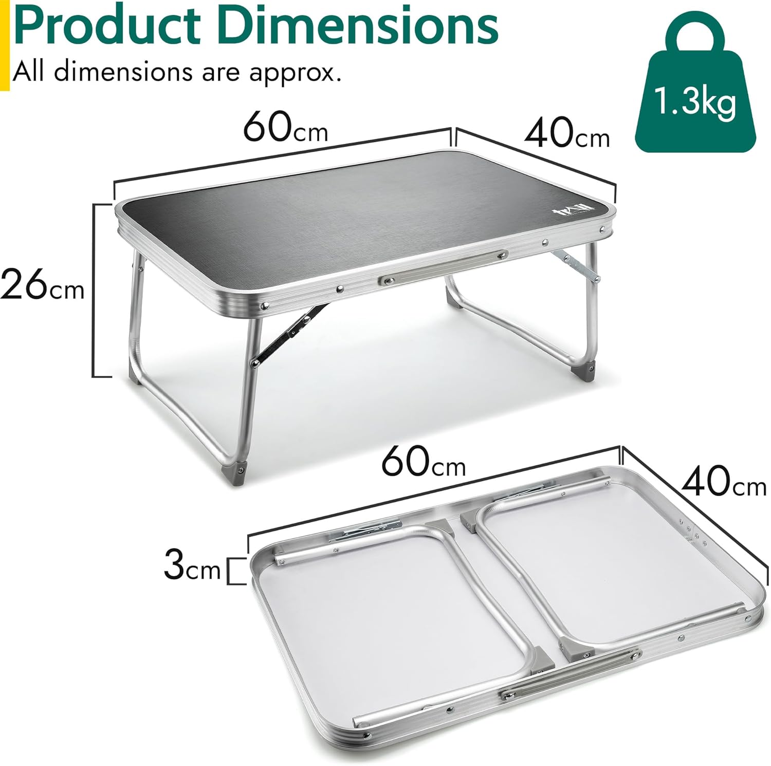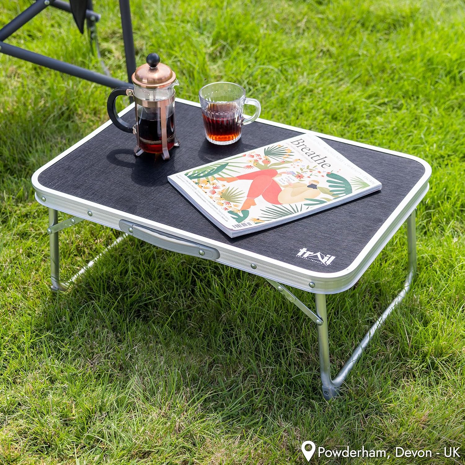 Trail Low Camping Table Folding Lightweight Lockable Aluminium Frame with Handle W60cm x D40cm x H26cm Black