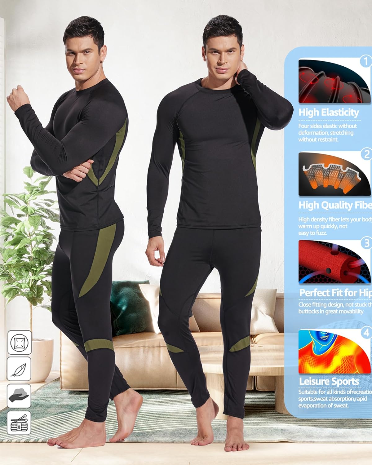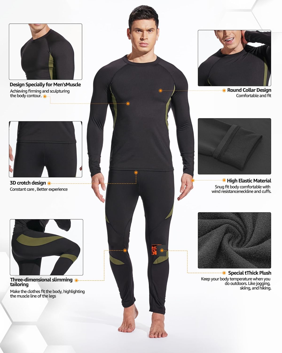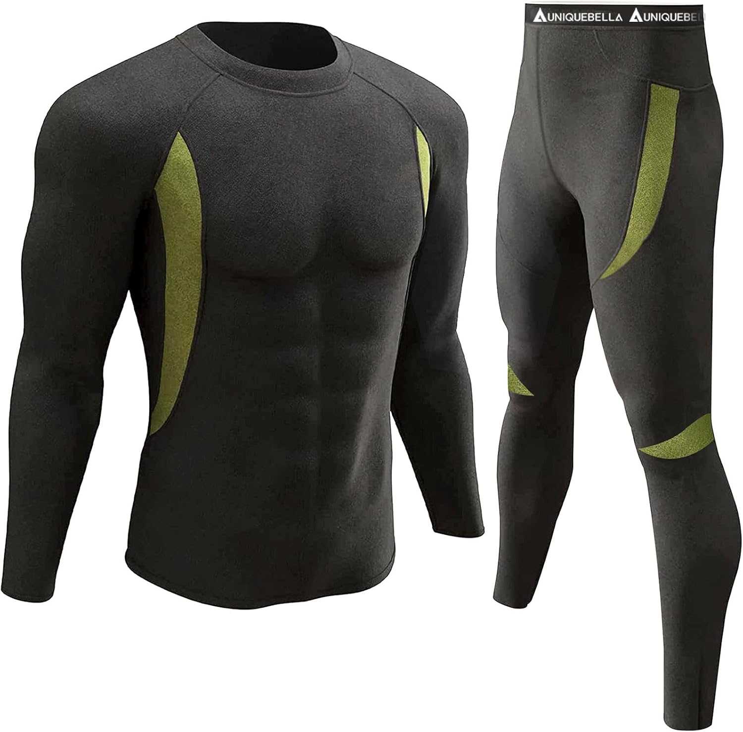 UNIQUEBELLA Mens Thermal Underwear Set Long Sleeve Tops Long Johns Thermal Base Layer Bottom Fleece Lined Quick Drying