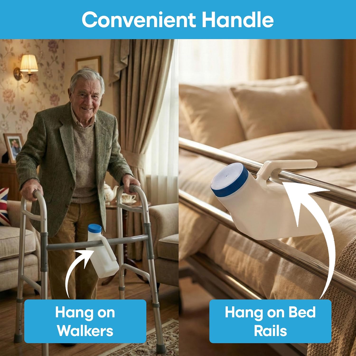 The Urinals for Men Glow in The Dark Lid by Tilcare is designed for convenience and safety. It features a screw-on lid that ensures a tight, leak-proof seal, preventing any spills even if dropped. The glow-in-the-dark lid allows for easy visibility in low light, making it a practical choice for nighttime use. This urinal is made from thick plastic, ensuring durability and reliability for various situations.