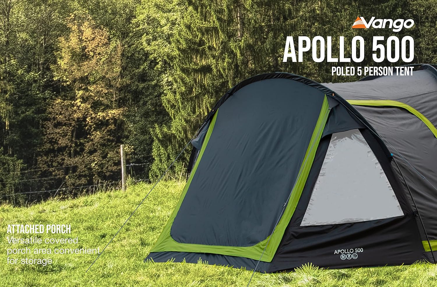 Vango Apollo 500 Family Tent for 5 People with Large Porch Living Area, Waterproof – Ideal Weekend Camping Tent