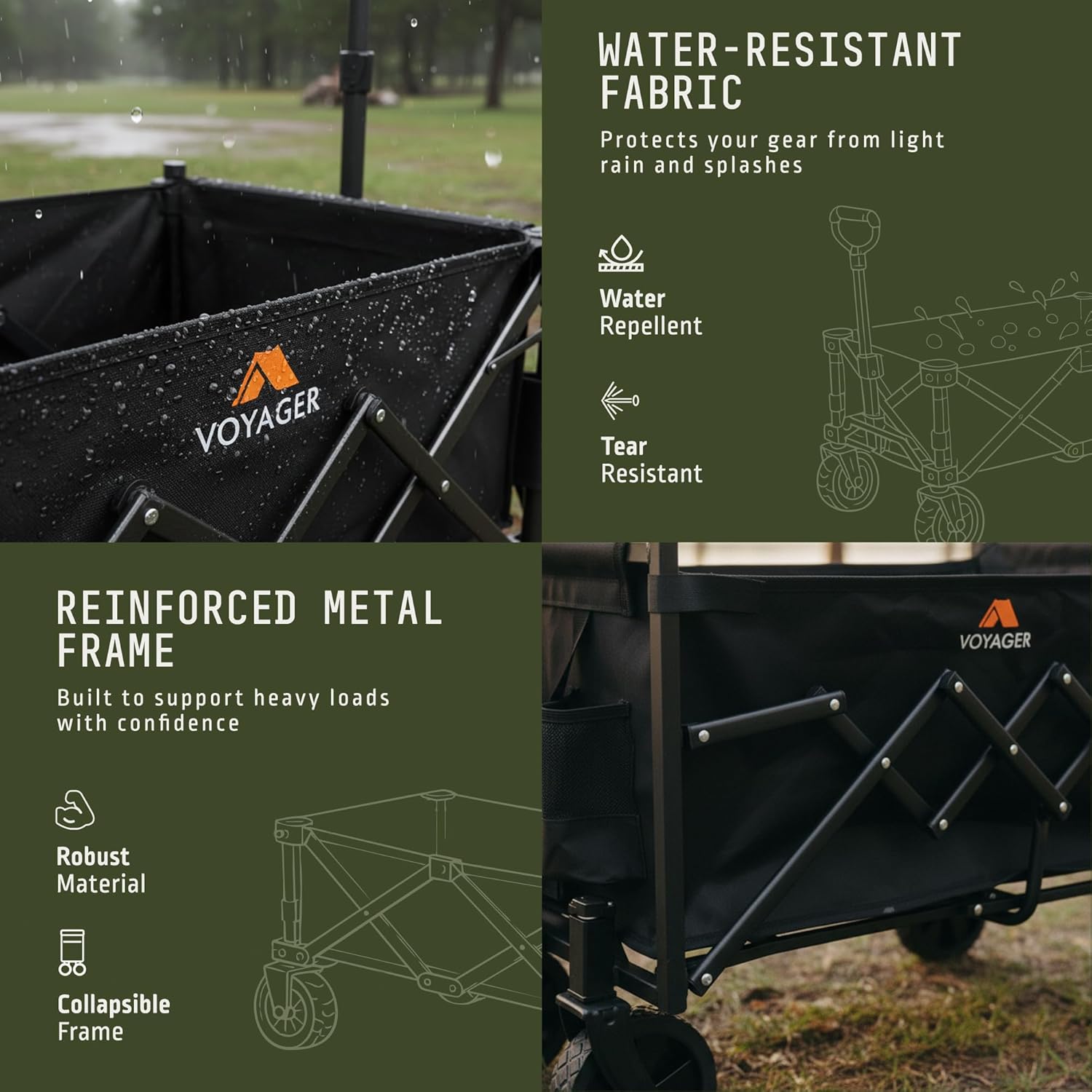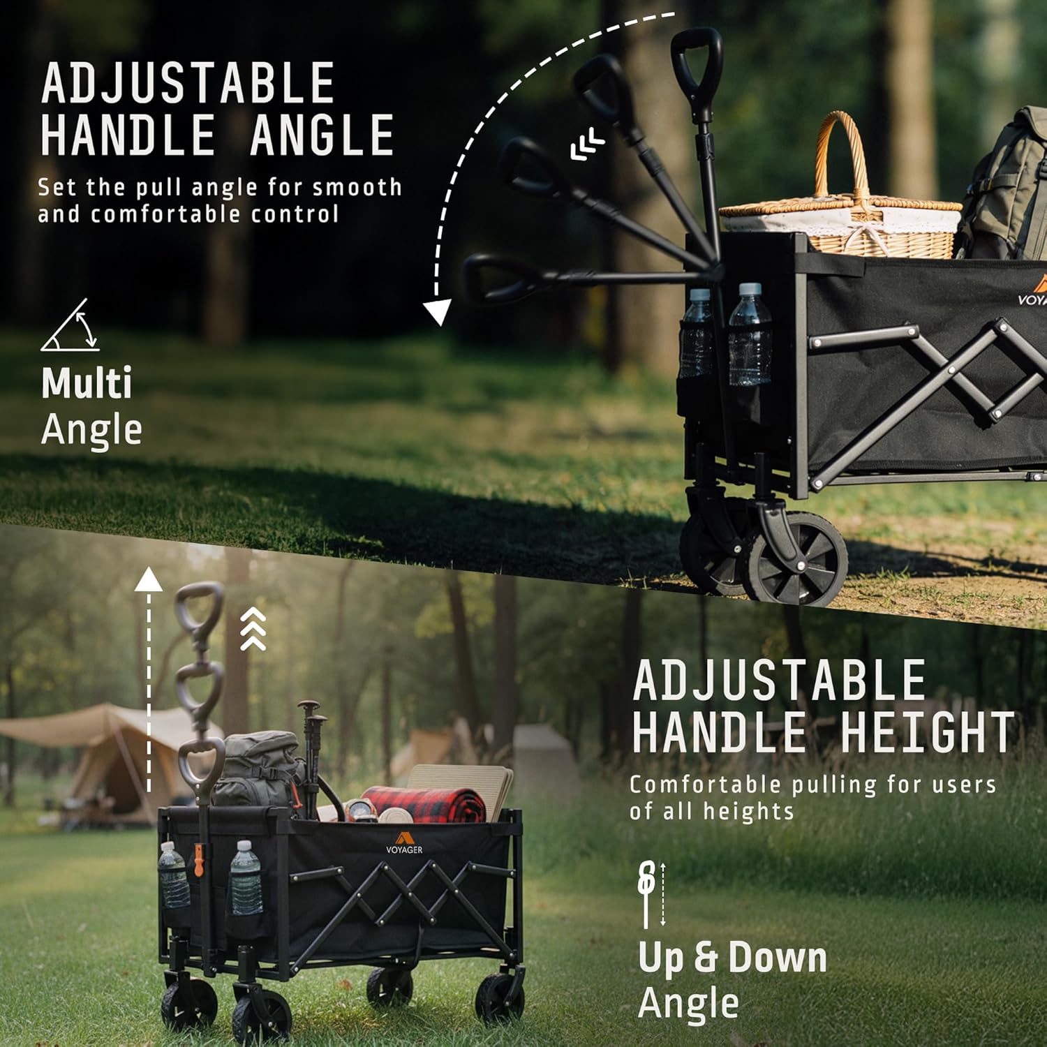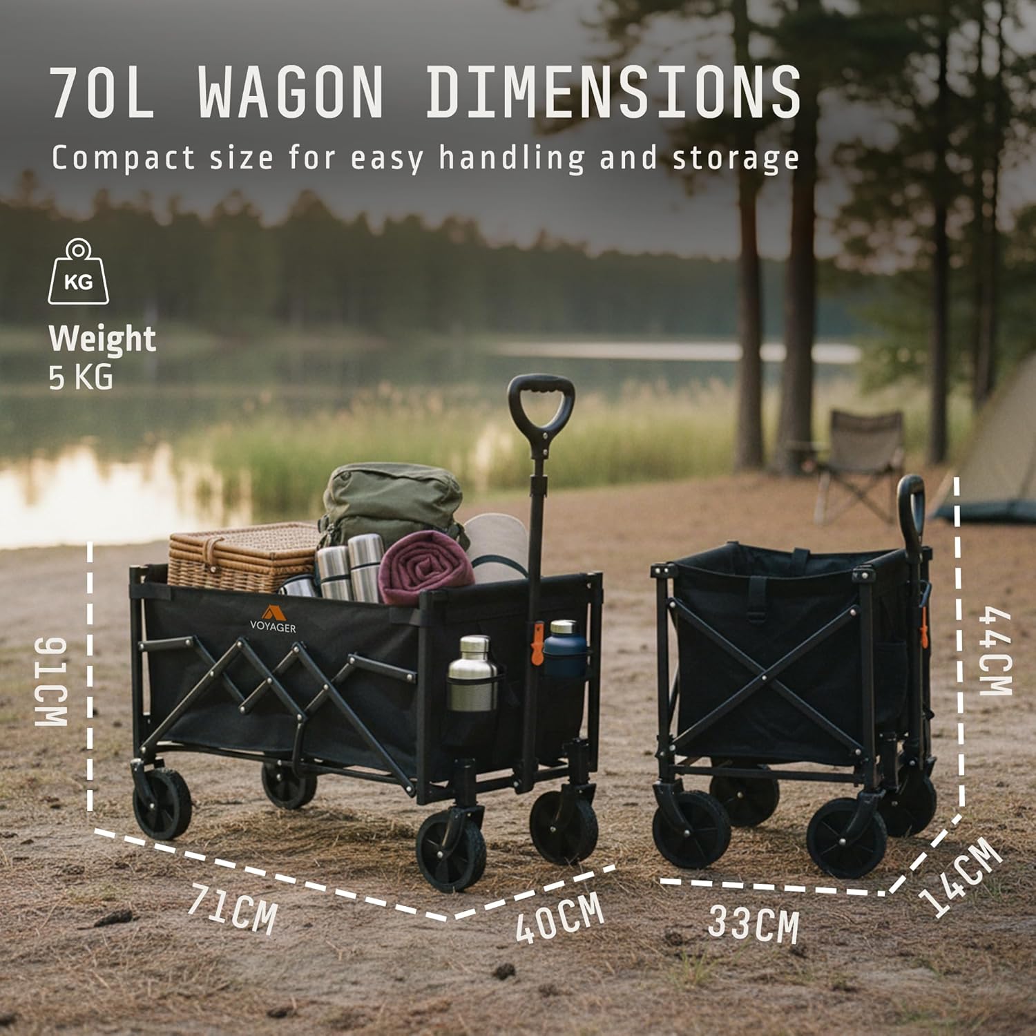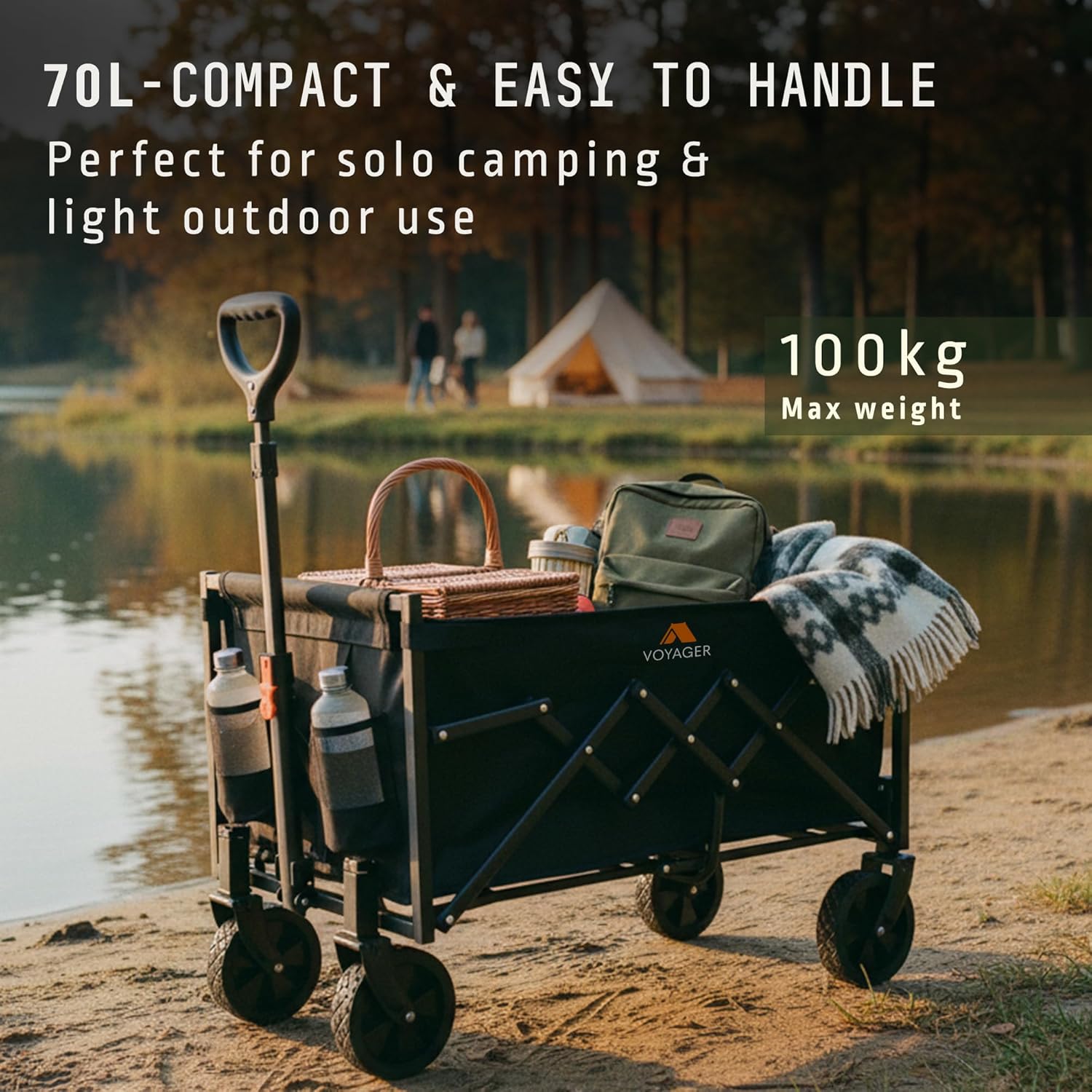 Voyager Lightweight Camping Wagon 70L, 100kg Folding Utility Trolley with All-Terrain Wheels, Compact Collapsible Cart for Festival Shopping, Picnic, Garden, Fishing, Beach & Camping (40x71x44cm)