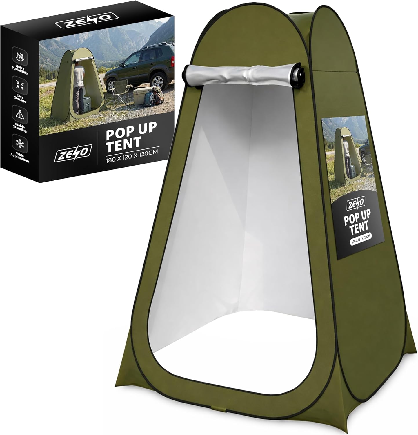 The ZENO Pop Up Tent is designed for toilet privacy, outdoor changing, dressing, and showering, making it ideal for camping, fishing, beach outings, and picnics.