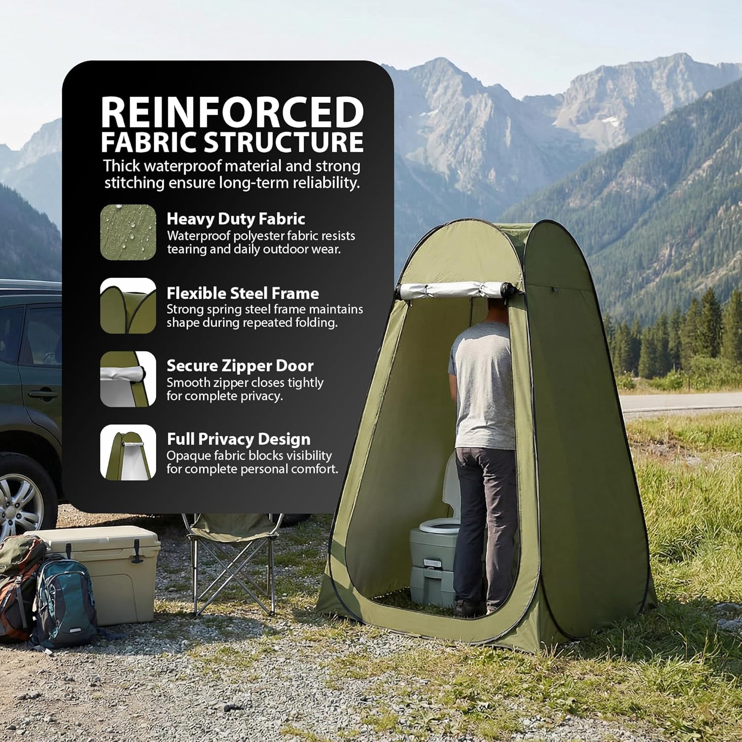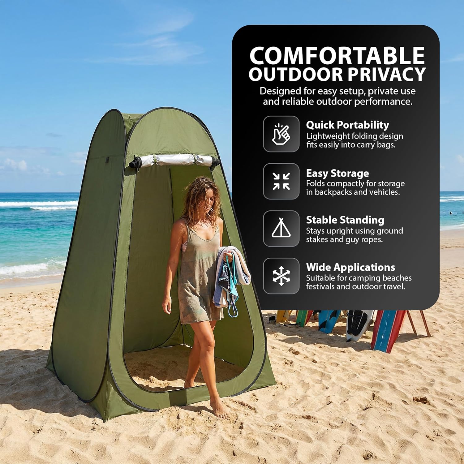 Ideal for camping, fishing, beach trips, and outdoor changing.