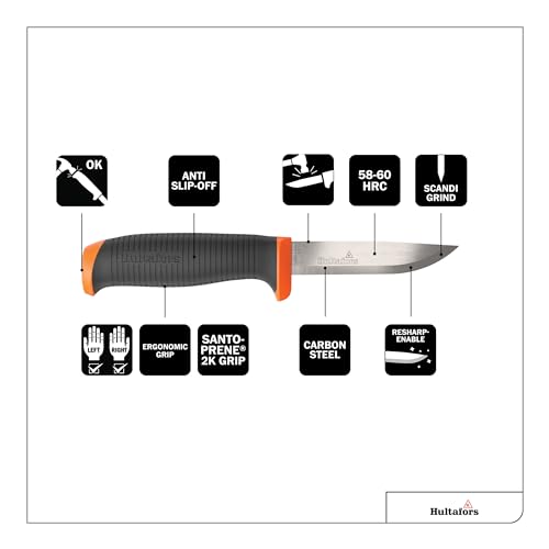 Hultafors Craftsman’s knife HVK GH I All-purpose knife with non-slip Santoprene® handle and premium carbon steel blade I Including holster and holder for working trousers I 380210